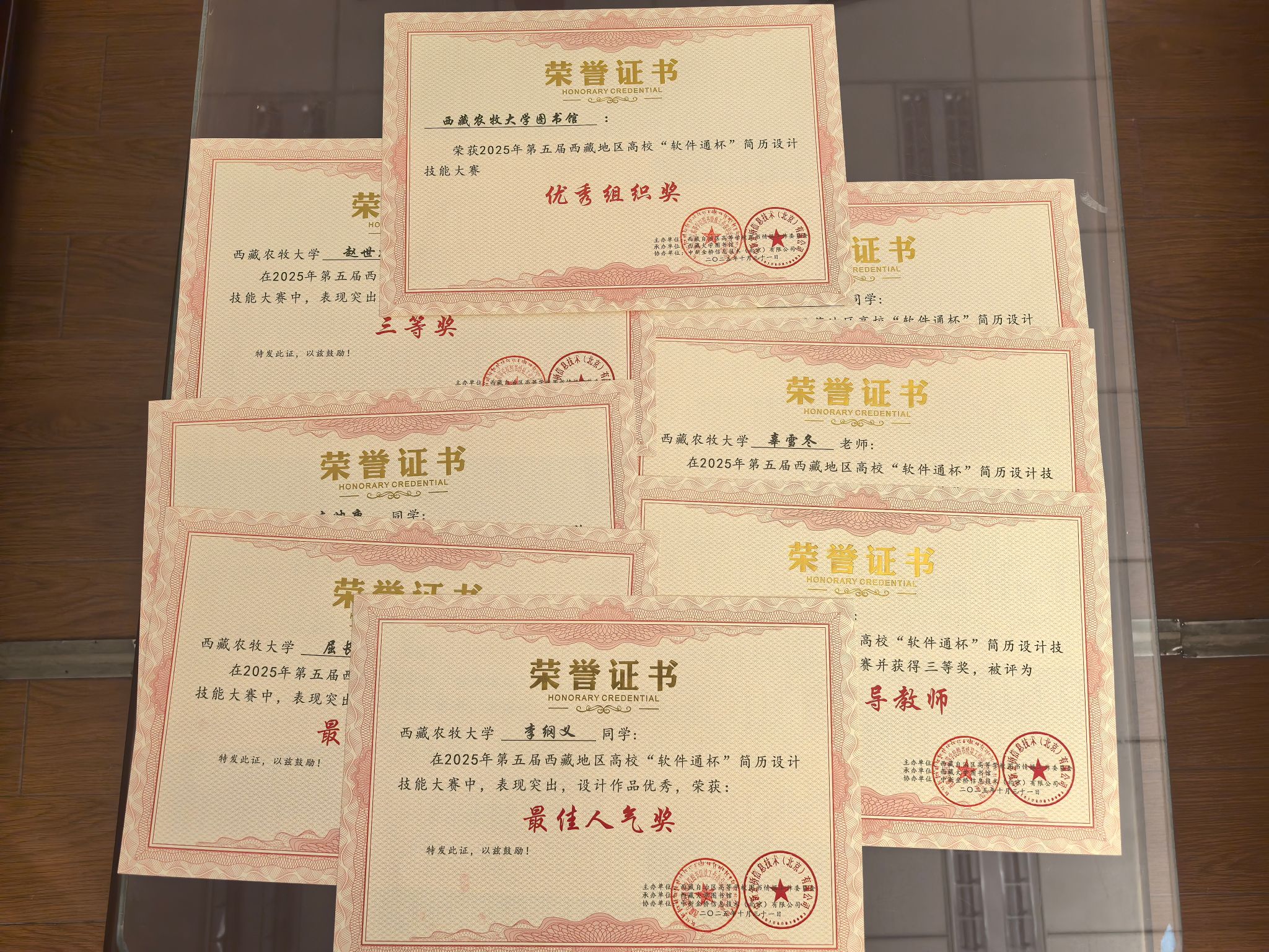 近日,2025年第五届西藏自治区高校“软件通杯”简历设计技能大赛圆满落幕。该赛事由西藏自治区高等学校图书情报工作委员会主办,以“以就业为导向、以能力为核心、以创新为动力”为宗旨,聚焦大学生就业核心能力提升。欧博学子在此次全区赛事中表现突出,斩获多项荣誉。