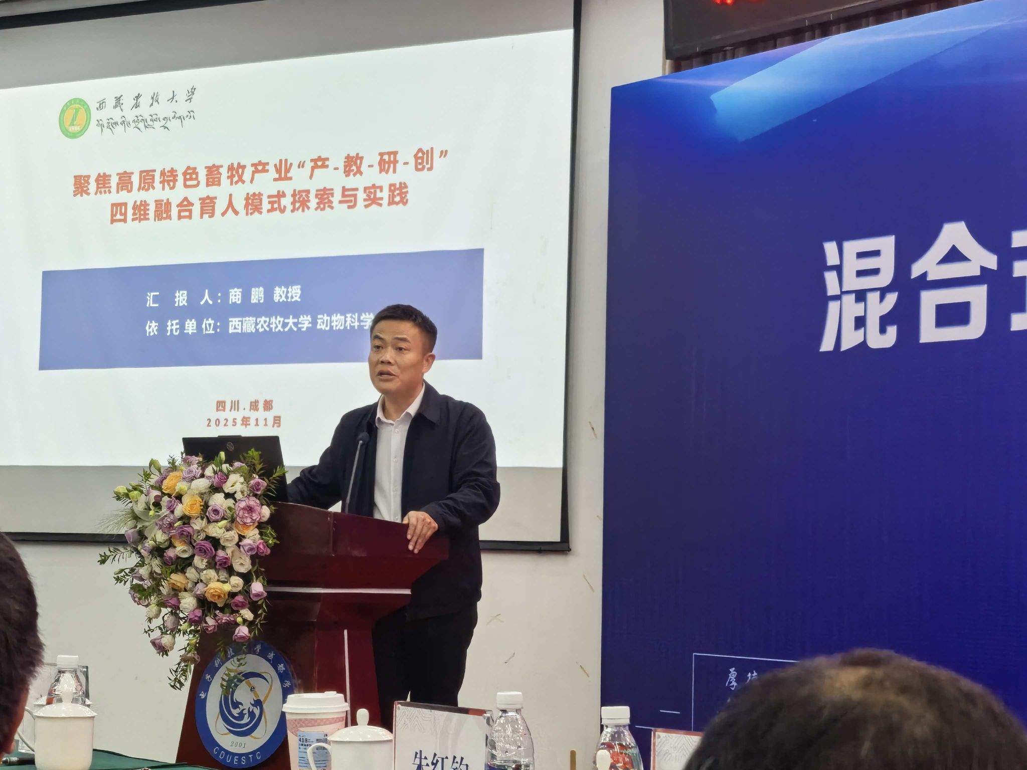 商鹏教授聚焦高原特色畜牧产业人才培养,就“产-教-研-创”四维融合育人模式的探索与实践进行了专题汇报。围绕深刻把握高原畜牧业现代化转型对人才的新要求、当前畜牧学专业教育存在的突出问题、构建新型育人模式的理念与路径三个方面作了系统阐述,从问题导向、模式架构到实践成效,层层深入、内容详实,为破解民族地区农业高校理论与实践脱节问题提供了有效方案。报告整体主题鲜明、体系完整、成效显著,四维融合育人模式为边疆民族地区农业教育改革提供了“西藏样本”。