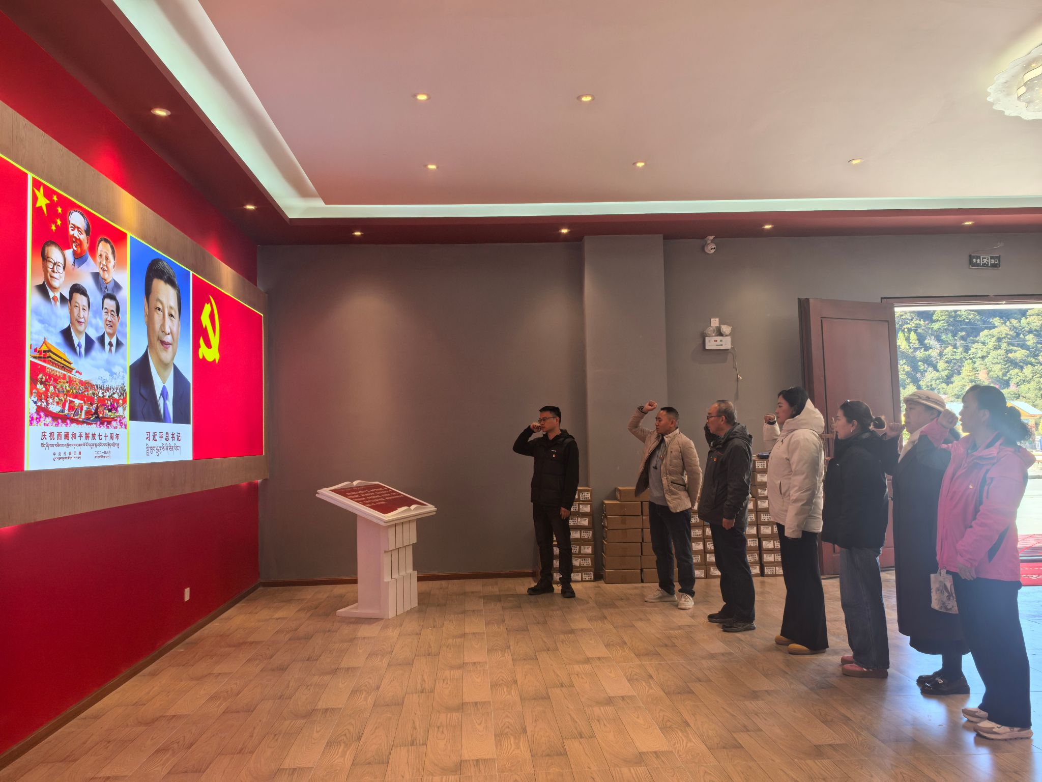 离开鲁朗知青点,党员们走进波密县扎木中心县委红楼。在专职讲解员的引导下,这座浸润着红色记忆的建筑缓缓揭开历史的面纱。讲解员结合详实的史料,生动讲述了红楼见证西藏民主改革历史转折的关键历程,以及共产党人在雪域高原践行初心使命的奋斗故事。党员们循着展陈脉络认真聆听,不时在文字史料与历史实物前驻足细细研读,系统梳理了红楼承载的革命历史与红色文化,对共产党人的责任担当有了更为深刻的体悟。为铭记这份精神传承,党员们面对熠熠生辉的党徽和鲜红的入党誓词,庄严举起右拳重温入党誓词,将先辈精神融入铿锵誓言,进一步坚定了立足岗位践行使命的决心。大家纷纷表示,将把这种跨越时空的精神力量融入图书馆日常服务工作,以更饱满的热情、更务实的作风为广大师生提供优质服务。
