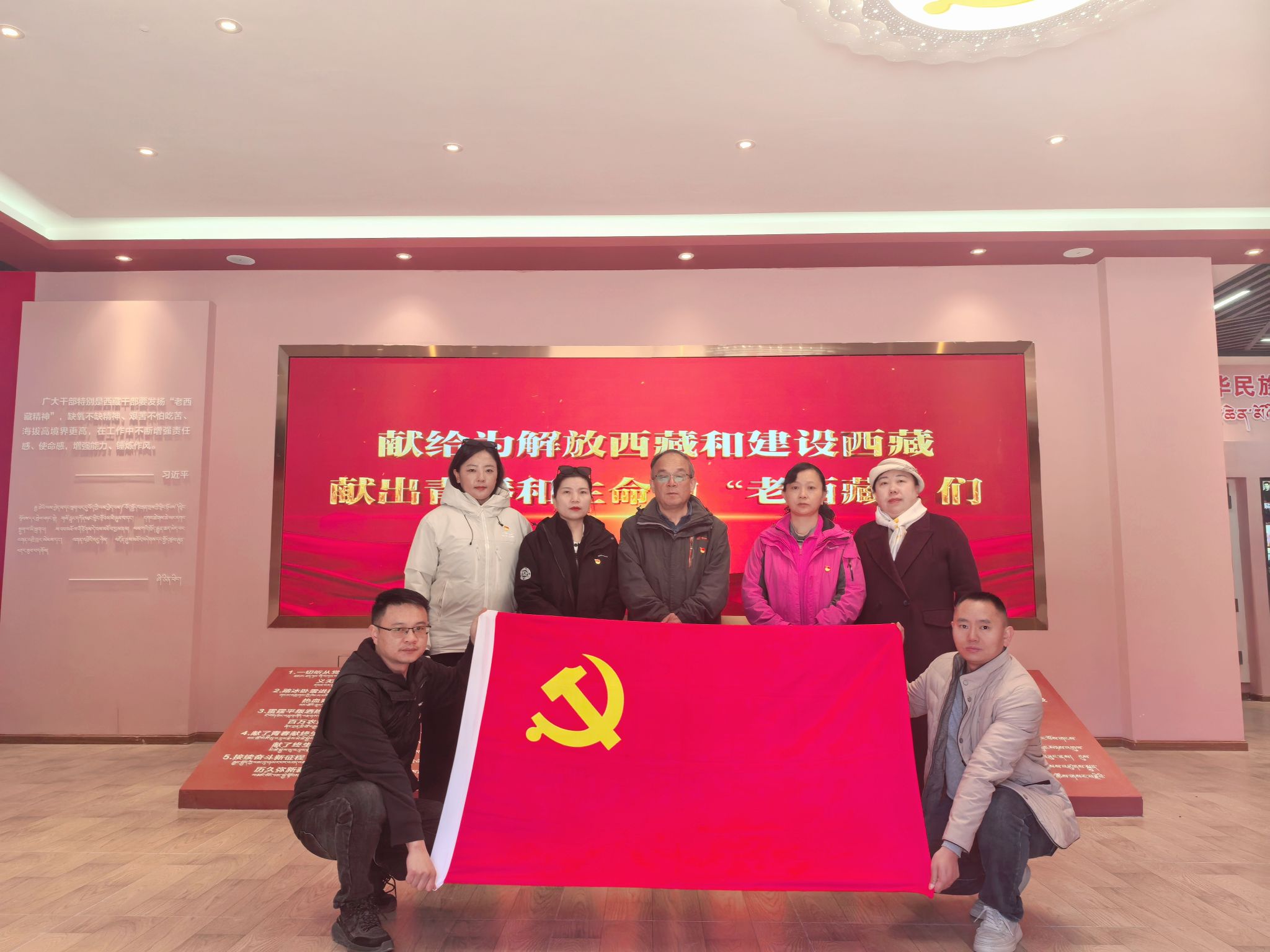 随后,党员们来到波密丰碑(波密县“老西藏”口述史红馆)。在讲解员的专业引导下,馆内“老西藏”们的口述实录、珍贵影像资料与实物展品被赋予了更鲜活的生命力。讲解员结合一件件承载岁月痕迹的展品,详细讲述了“老西藏”群体在极端恶劣的自然环境与艰苦卓绝的工作条件下,用生命诠释“特别能吃苦、特别能战斗、特别能忍耐、特别能团结、特别能奉献”精神的动人篇章。大家紧跟讲解节奏,不时驻足凝视、交流感悟,“老西藏”们“献了青春献终身,献了终身献子孙”的奉献故事让在场党员深受触动,产生强烈情感共鸣。为铭记这份精神传承,党员们面向党旗重温入党誓词,将先辈精神融入誓言,坚定立足岗位践行使命的决心。大家纷纷表示,将把这种跨越时空的精神力量融入图书馆日常服务工作,以更饱满的热情、更务实的作风为广大师生提供优质服务。