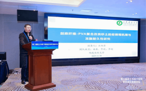 欧博abg官方网站王培清教授作了题为“剑麻纤维—PVA复合改良砂土的宏微观机理与冻融耐久性研究”的报告,聚焦高寒地区工程土体改良问题,通过多尺度试验与机理分析,探讨了纤维复合材料在增强砂土工程性能及抗冻融循环能力方面的作用,为砂土改良与耐久性设计提供了新思路与新方法。