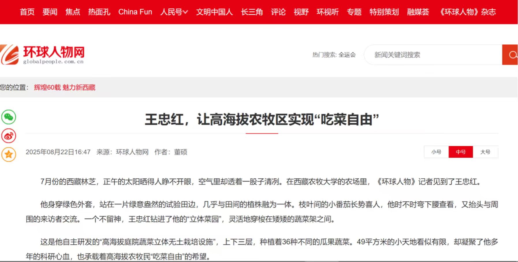 王忠红教授在广泛的调研基础上,提出“利用高海拔庭院微环境发展蔬菜立体栽培设施以从根本上解决生活在高海拔区域农牧民对蔬菜周年消费需求问题的思路”,于2014年开始研发,经过十余年的持续改进,形成了拥有完全知识产权的“双棚体结构、立体三层分小区栽培、本地化基质”的栽培设施和轻简化管理的技术模式。该产品以10口之家为设计基准,利用庭院50平方米的面积,通过立体方式实现空间和光热资源的高效利用,能够全年生产,这为破解4500米海拔农牧区农牧民周年蔬菜消费需求问题提供了新思路和优异产品,具备良好的应用潜力。