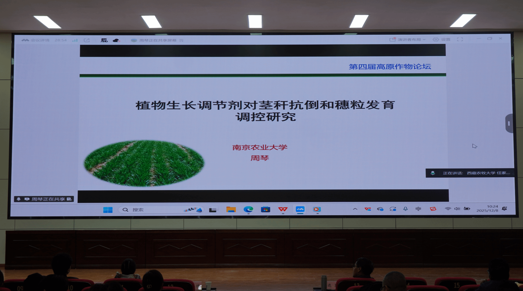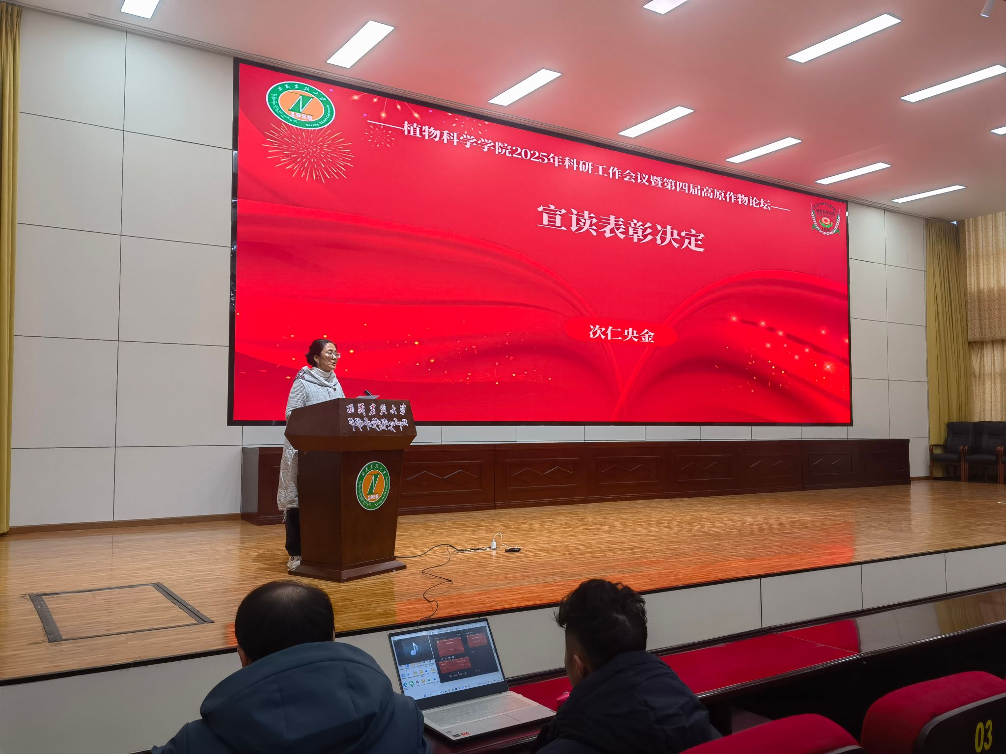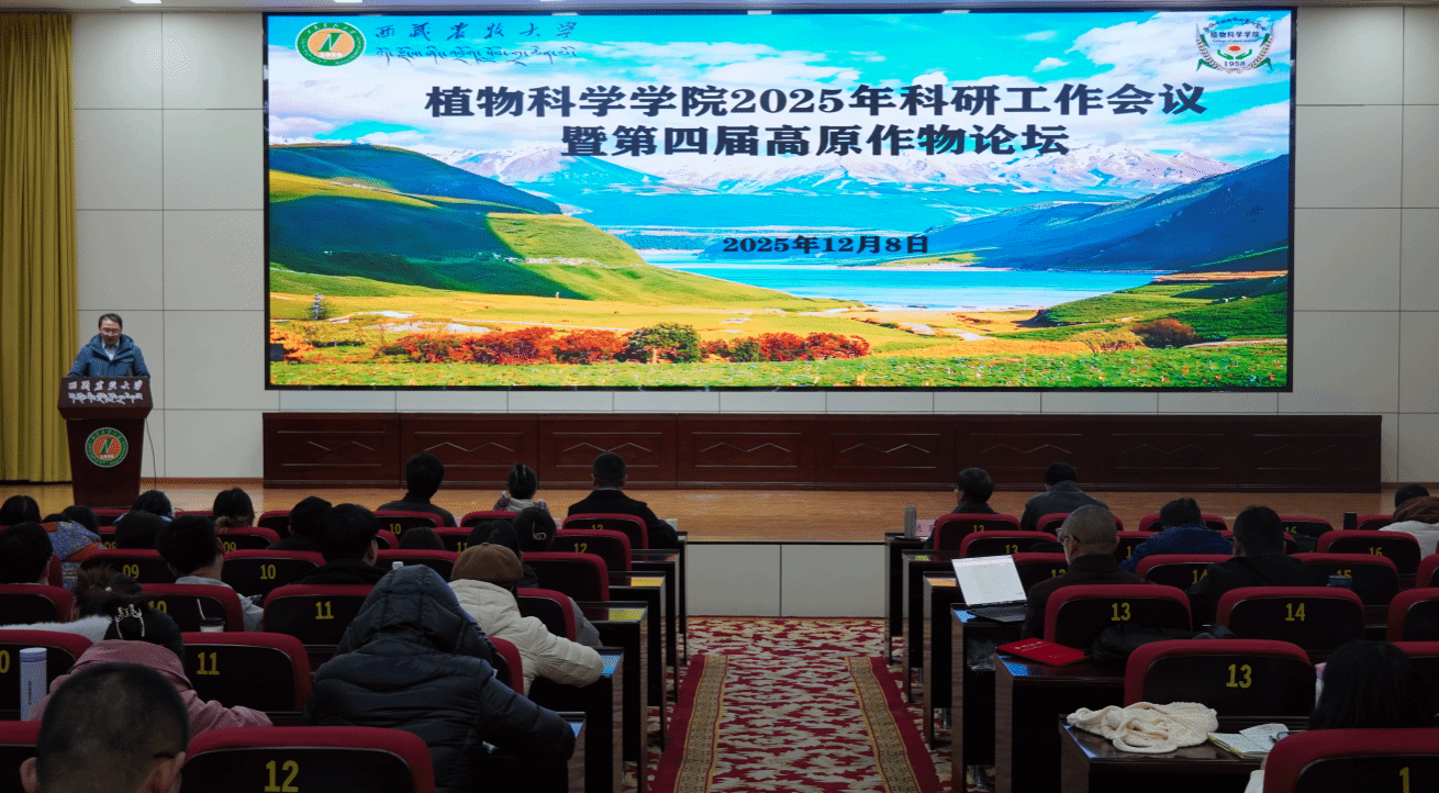 为全面系统总结近三年科研工作、表彰先进典型、激发创新活力、促进学术交流,植物科学学院于12月8日在第一行政楼学术报告厅隆重召开2025年度科研工作会暨第四届高原作物论坛。会议特邀西北农林科技大学、南京农业大学等高校的专家、博士研究生及硕士研究生代表共同参与,通过成果总结、表彰先进、经验分享与学术交流,凝聚发展共识,推动学院科研工作向更高水平迈进。