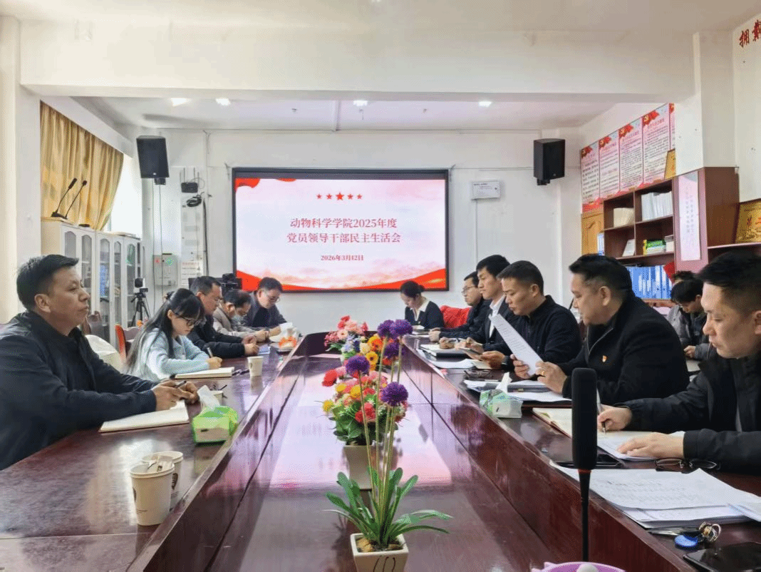 根据学校党委的统一部署,动物科学学院领导班子于2026年3月12日下午召开2025年度民主生活会。校党委委员、纪委书记尼玛,组织部副部长钟玲到会指导。学院领导班子成员米玛顿珠、商鹏、石徐、柴进参加会议,各党支部书记、各教研室及科室负责人、师生代表共20余人列席会议。会议由米玛顿珠同志主持。