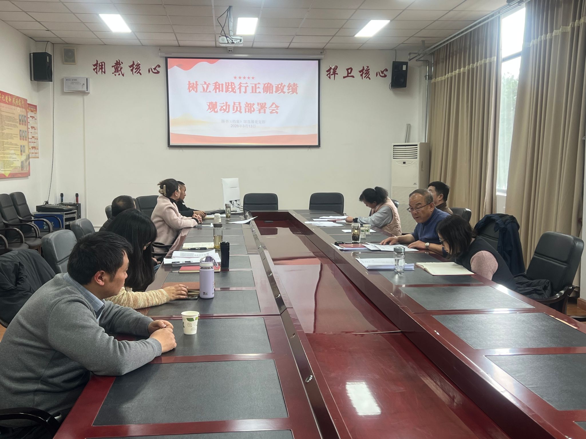 3月13日下午,图书馆(档案馆)直属党支部召开树立和践行正确政绩观学习教育动员部署会,全体党员参加会议,党总支书记张宏伟主持会议并讲话。