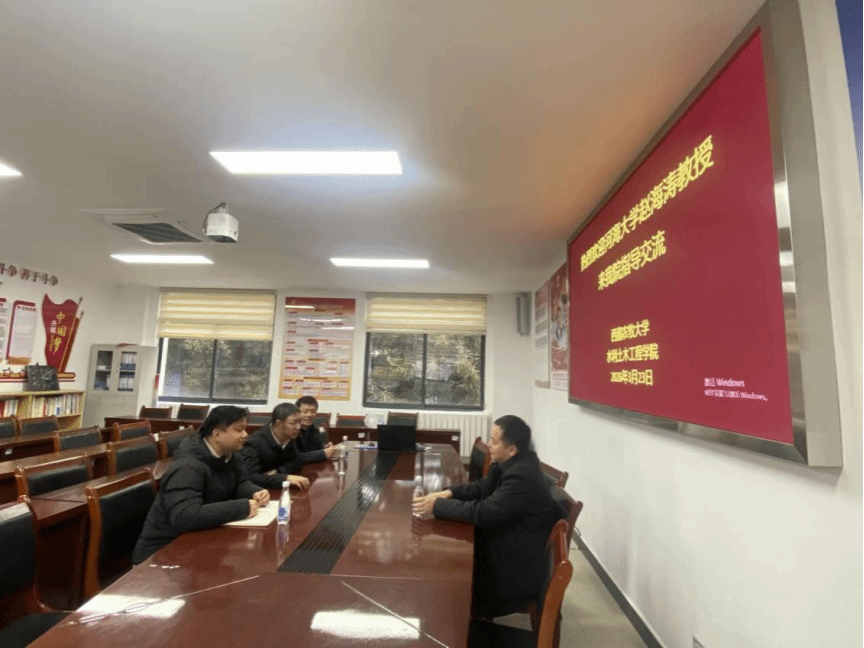 报告会后,王培清副校长、甘磊副院长、孙海波副院长等学院领导班子与赵海涛教授举行座谈。双方围绕学科建设、人才联合培养、科研合作、成果转化及平台共建等议题深入交换意见,就建立长期稳定的合作机制达成广泛共识。赵海涛教授介绍了河海大学土木与交通学院在学科布局、团队建设、产学研融合等方面的经验,并表示愿与我院在涉水工程结构安全、混凝土耐久性等优势方向上加强协作,共同助力水利交通行业的高质量发展。我院领导对赵海涛教授一行表示热烈欢迎和衷心感谢,希望以此次交流为契机,进一步推动双方资源共享与优势互补,持续提升我院人才培养质量与科研创新能力。