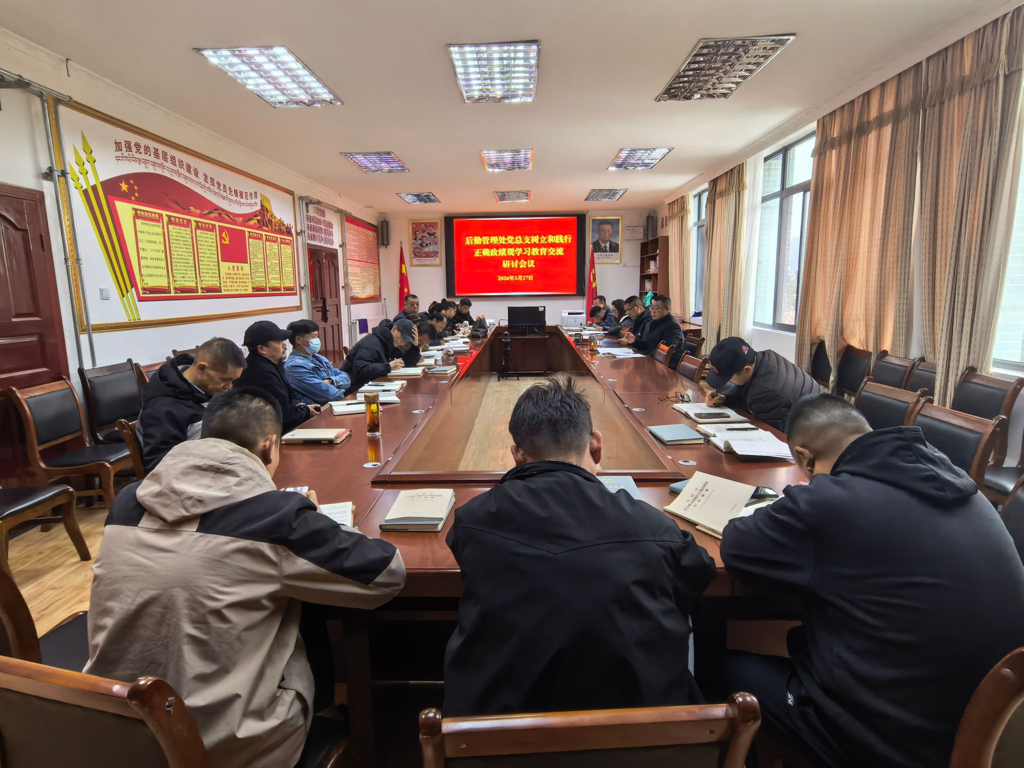 为了进一步深入贯彻落实习近平总书记关于树立和践行正确政绩观学习教育的重要指示精神,牢固树立和践行正确政绩观,推进学习教育走深走实,3月27日,后勤管理处党总支召开树立和践行正确政绩观学习教育专题研讨会。会议由处党总支书记普穷主持,全体党员参会。