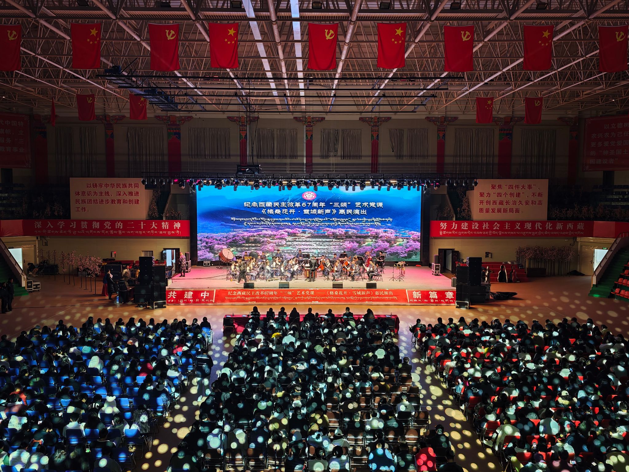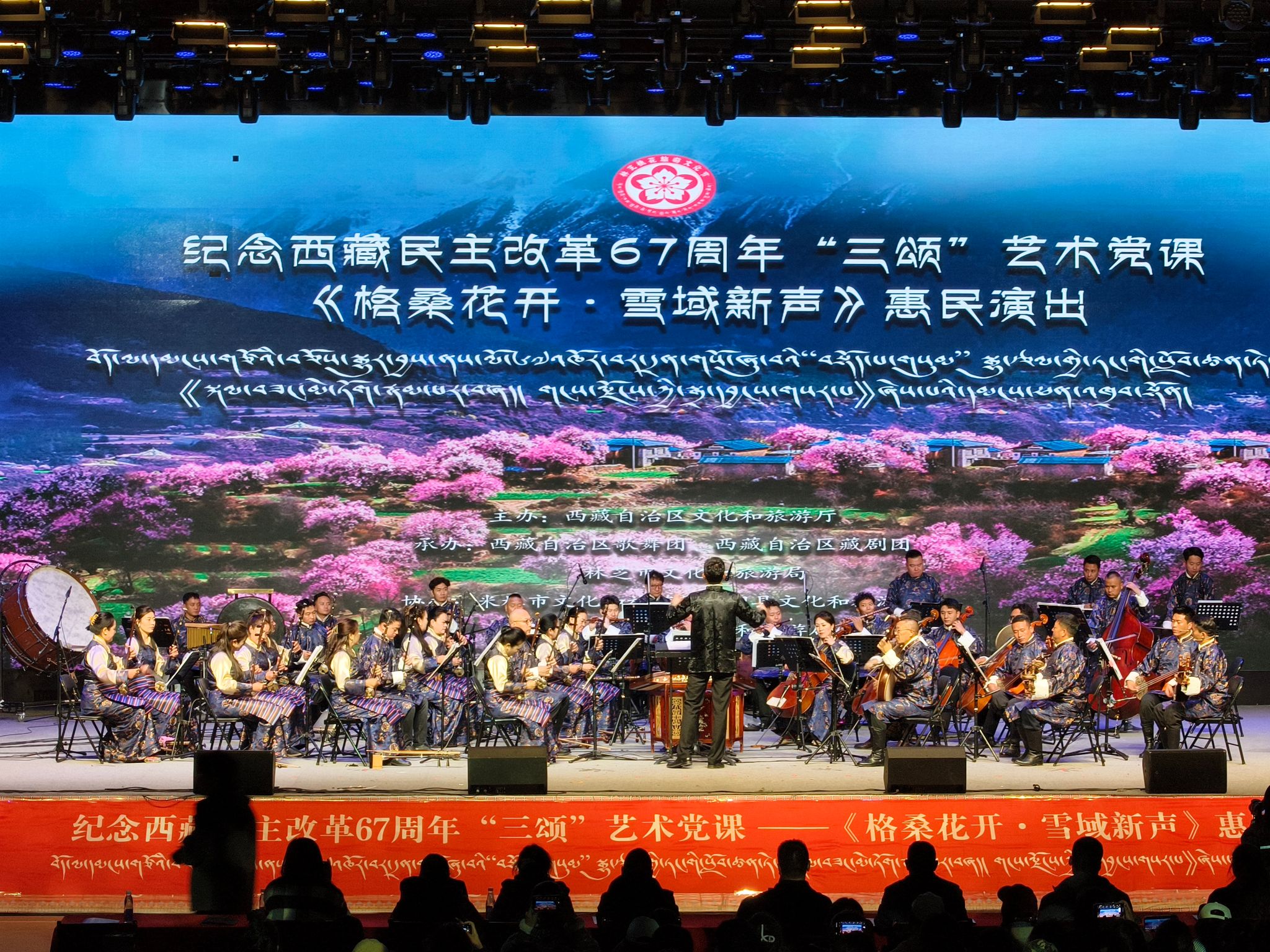 为隆重纪念西藏民主改革67周年,深入贯彻落实新时代党的治藏方略,以铸牢中华民族共同体意识为主线,创新开展“颂党恩、颂核心、颂人民”主题艺术党课,2026年4月7日,自治区歌舞团联合自治区藏剧团、组织西藏民族乐团赴欧博成功举办《格桑花开·雪域新声》惠民演出活动。