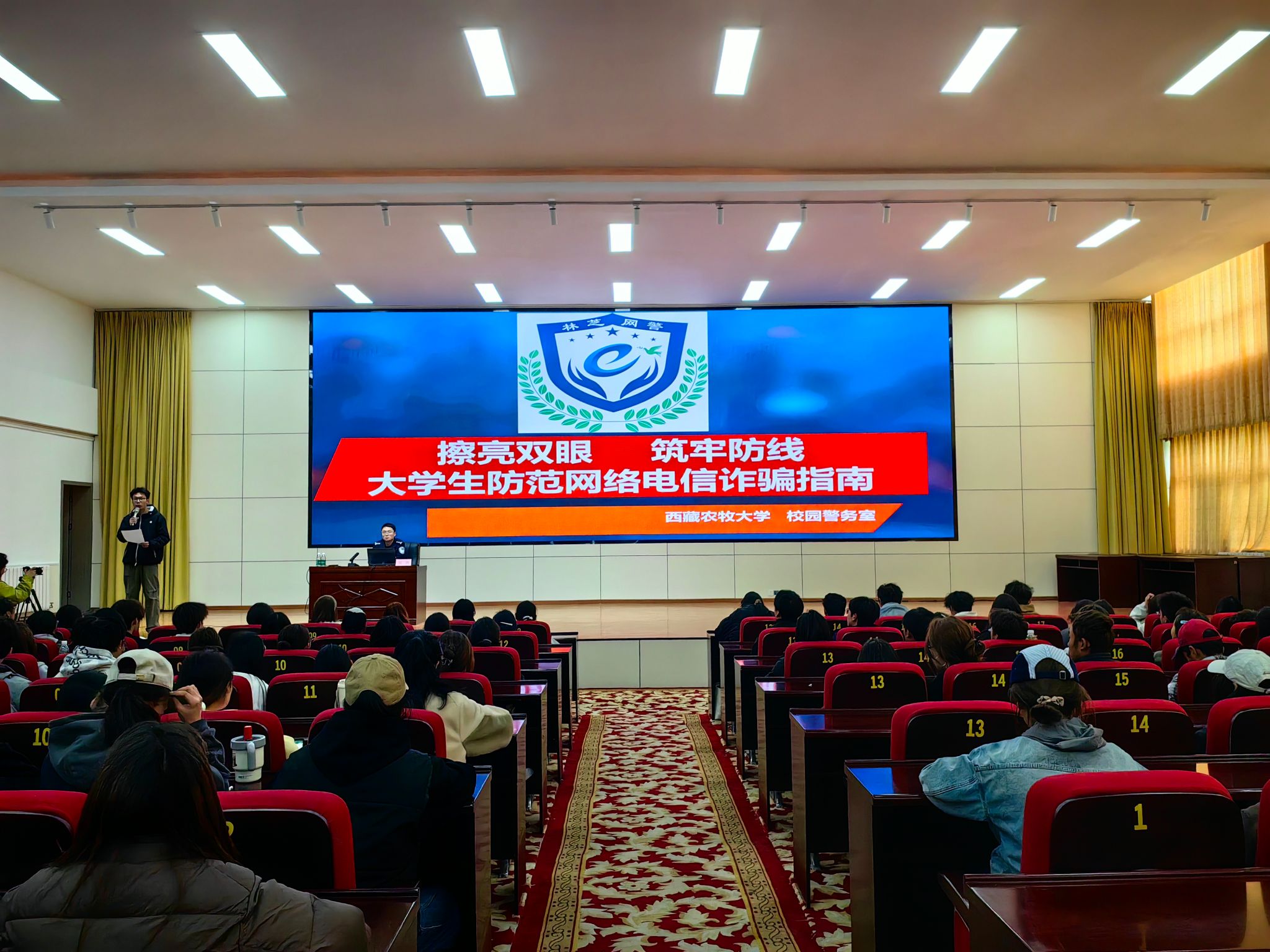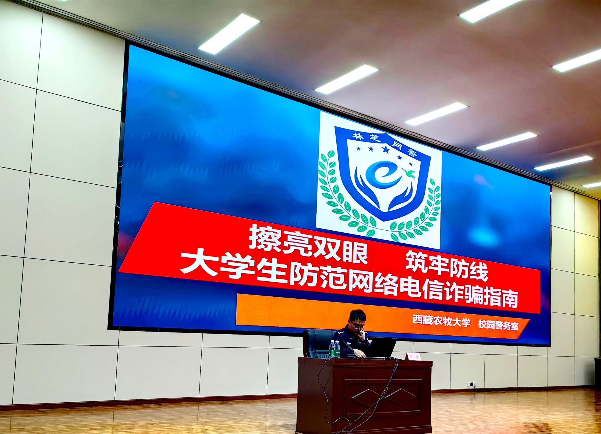 为深入贯彻总体国家安全观,切实增强全校学生的国家安全意识、网络文明素养与反诈能力,在全民国家安全教育日来临之际,校党委宣传部、安全保卫处于4月10日在一号行政楼一楼报告厅联合举办网络安全与防范诈骗专题讲座,林芝市公安局网络安全保卫支队三级警务技术主管郑凯警官受邀主讲,近200名学生代表到场聆听。