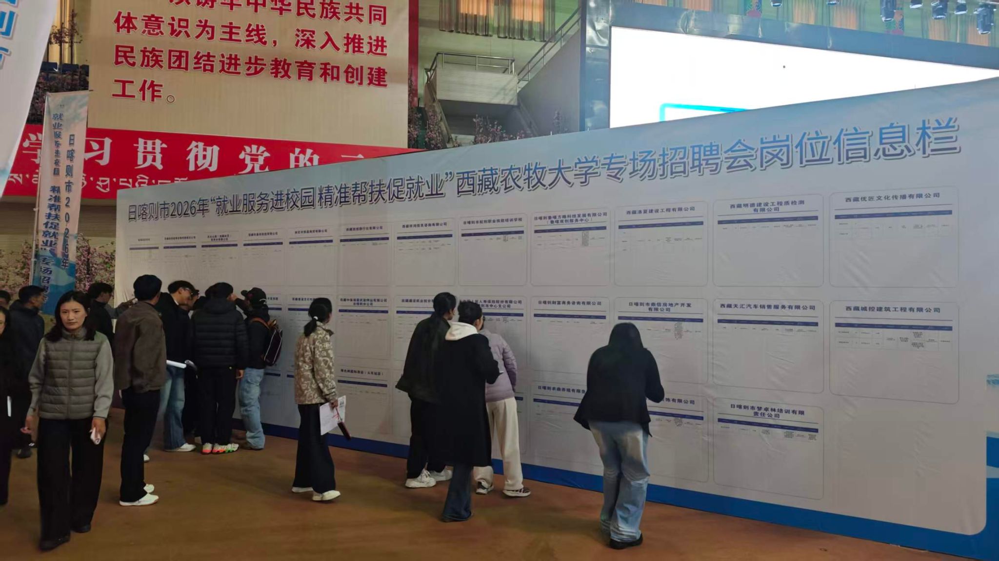 宣讲结束后,现场同步举行招聘活动。此次招聘汇聚区内34家优质企业,精准结合欧博学科专业特点与毕业生就业需求,共提供就业岗位414个,涵盖农牧科技、基层服务、企业管理等多个领域,为日喀则籍毕业生搭建了丰富多元、精准适配的就业选择平台,有效拓宽了毕业生就业渠道,切实将政策宣讲成效转化为促进就业的实际动力。