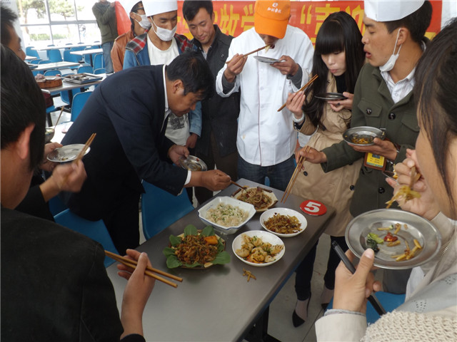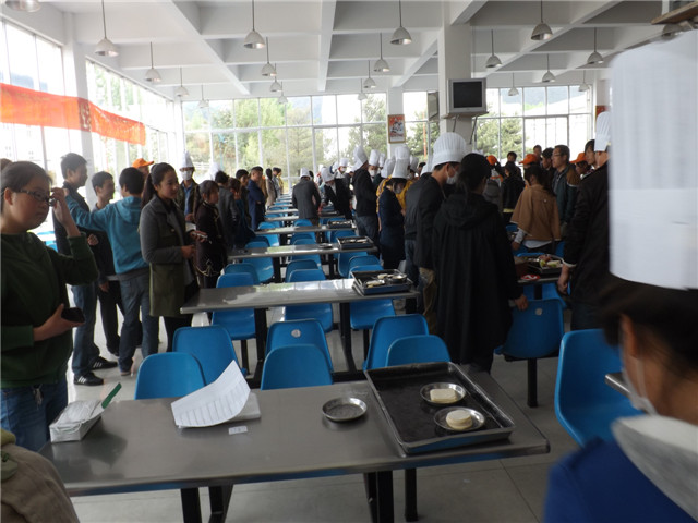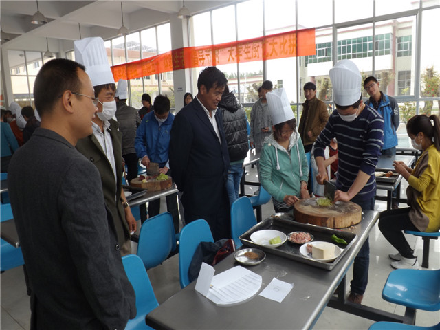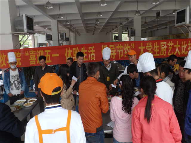 为进一步深入贯彻落实习近平总书记关于厉行节约、反对浪费的重要批示精神,加强校园精神文明建设,大力弘扬中华民族尊重劳动、尊重劳动成果的传统美德,2013年5月1日上午,在院团委、后勤管理处、学生会的精心组织下,我院在学生二食堂一楼举行了以“喜迎五一 体验生活 倡导节约”为主题的大学生厨艺大比拼活动。各二级学院及学生团体组建的10个代表队参加了比赛。