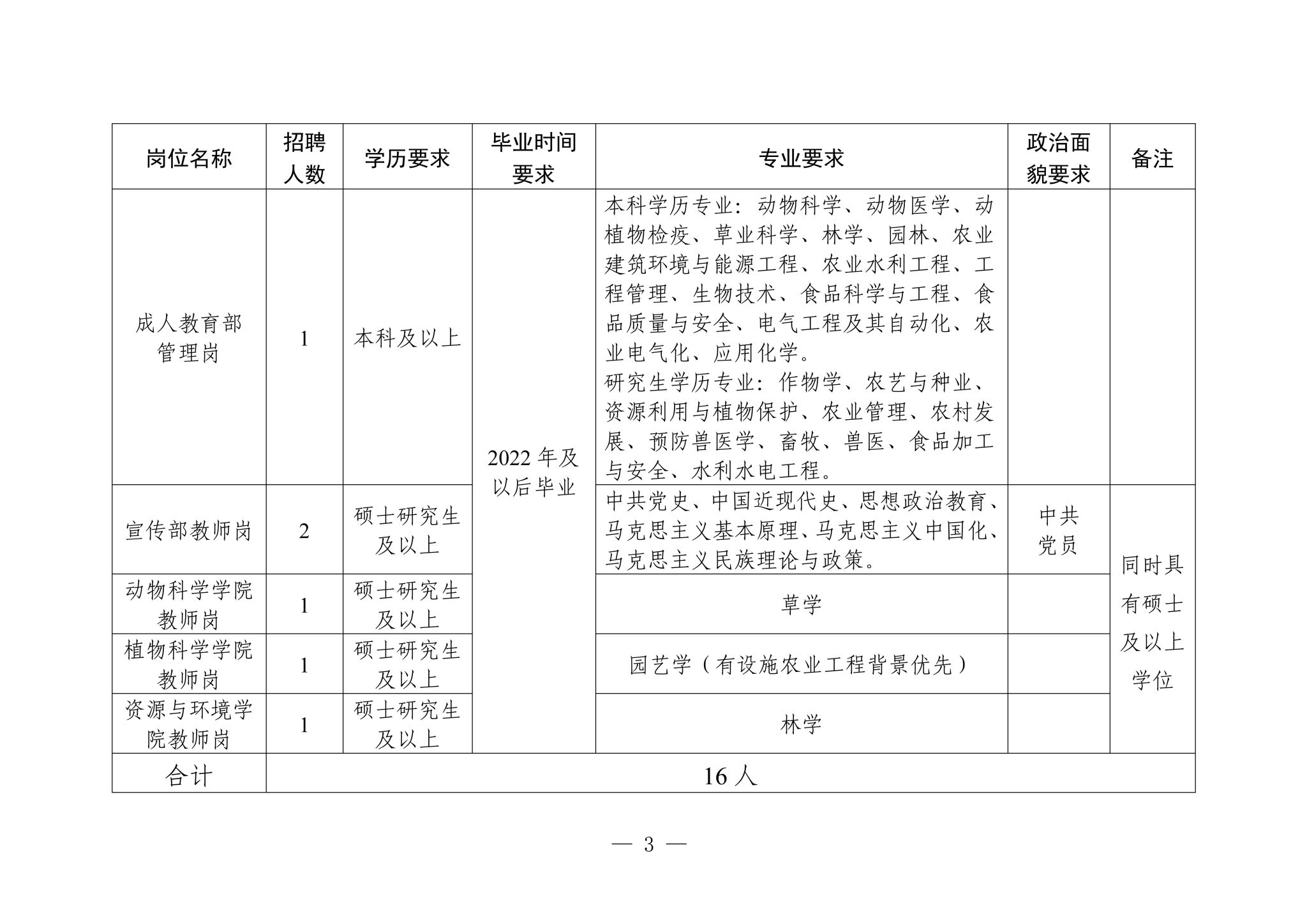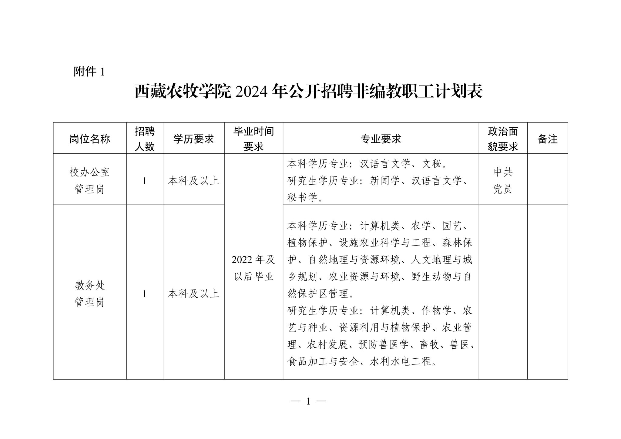 附件:西藏农牧学院2024年公开招聘非编教职工计划表