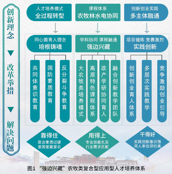 学校秉承“博学为农、精业兴藏”的校训和“爱国、团结、勤奋、求实、创新”的校风,大力弘扬“老西藏精神”和学校“筹建精神”,坚持“立足高原,面向西藏,服务‘三农’”办学定位和“高原农业、高原生态、高原水电”三条主线,突出爱党爱国爱社会主义、维护祖国统一和民族团结这个政治标准,按照“爱西藏、爱专业、实基础、重实践、求创新”的人才培养规格,努力培养“靠得住、下得去、用得上、留得住、干得好”的社会主义合格建设者和可靠接班人。迁校筹建以来,为西藏培养和输送了3万余名全日制专业技术人才,成为西藏各级领导骨干、科研骨干、管理骨干的摇篮,涌现出一批杰出校友代表。