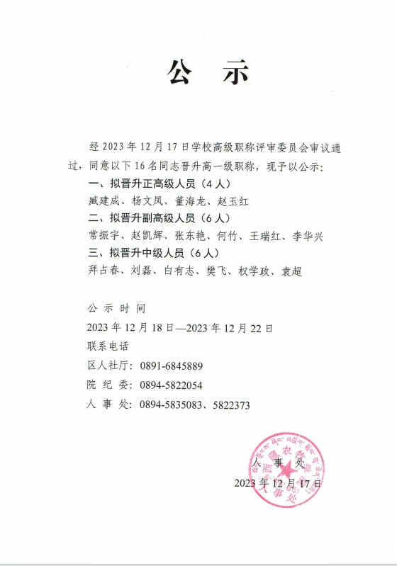 2023年度职称评审高评会结果公示