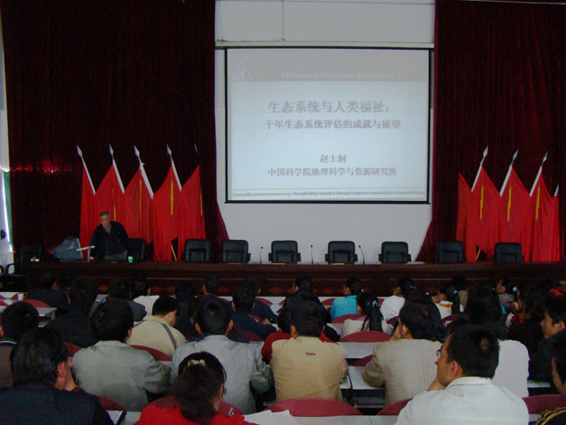2008年9月3日下午,中国科学院地理科学与资源环境研究所赵士洞研究员应邀来到我院,在学术报告厅为我院师生做了题为“生态系统与人类福祉:千年生态系统评估的成就与贡献”和“长期生态学研究:起源、现状与发展方向”的学术报告。报告会由郑维列副院长主持,我院100多名师生聆听了此次报告。
