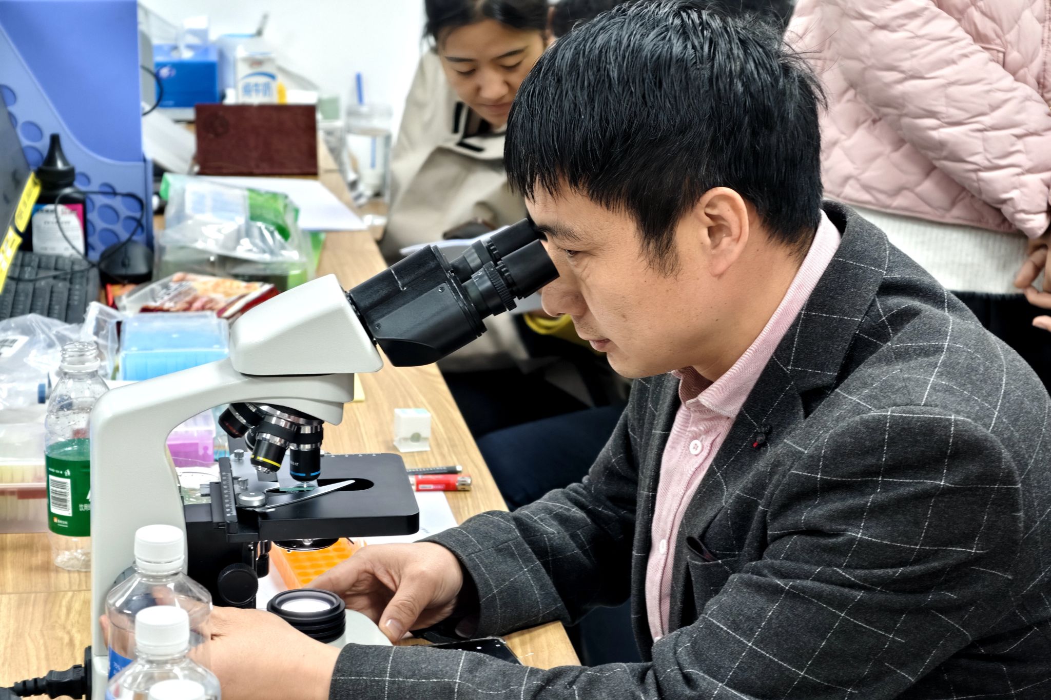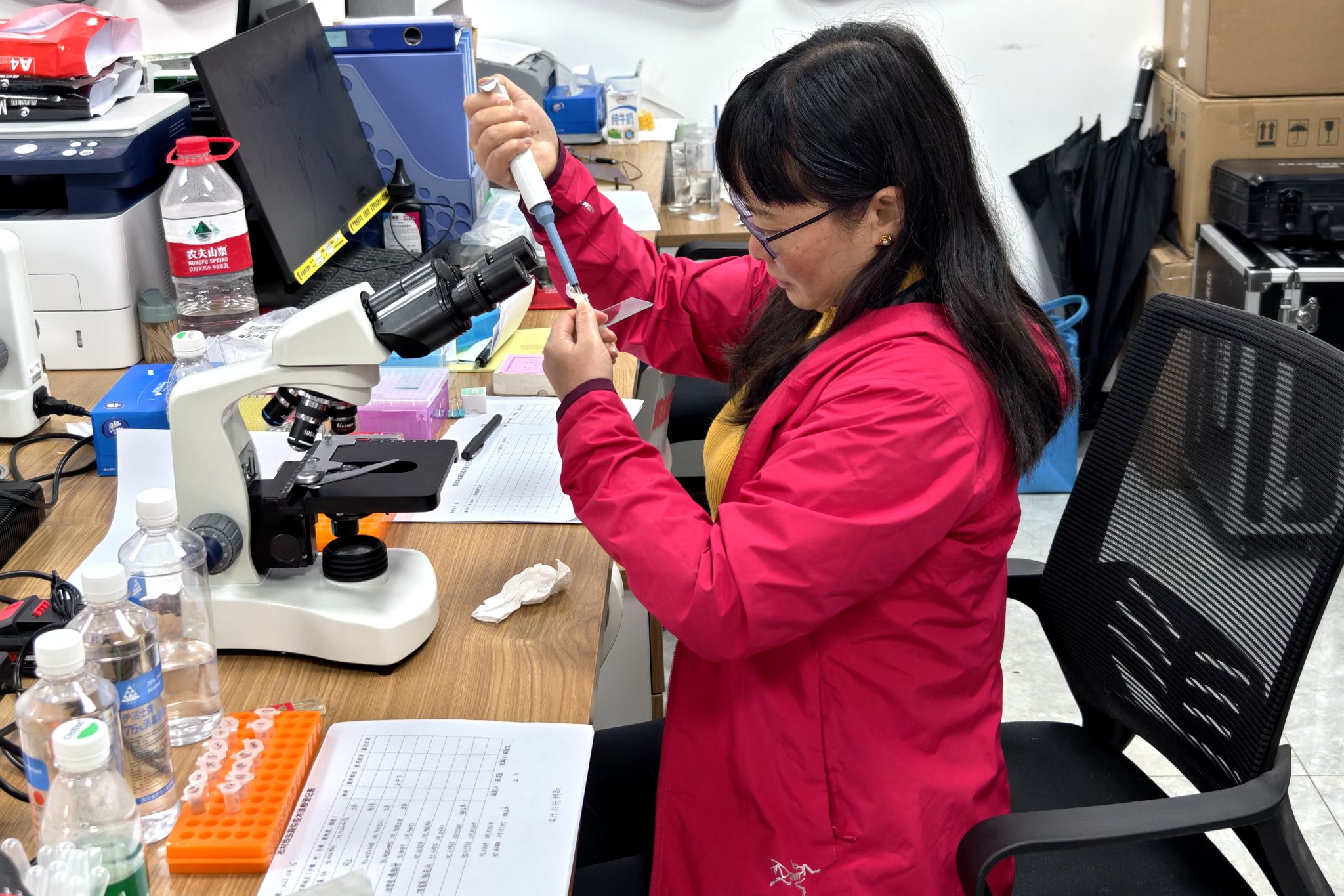 培训在下察隅镇松材线虫病检疫检验临时实验室中开展,培训内容丰富且实用,涵盖了室内线虫分离、临时玻片制作、显微镜下精准甄别雌雄成虫关键形态特征的技巧,以及快速分子检测技术等。几位学员通过将松材线虫形态学与分子生物学检测方法有机融合,全面且精准地掌握了松材线虫病的检测技术,在专业技能上得到了显著提升。