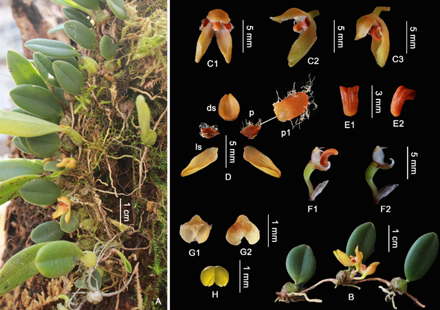 近日,西藏农牧学院邢震教授研究团队与中国科学院西双版纳热带植物园(以下简称“版纳植物园”)罗艳研究员团队在西藏自治区林芝市波密县发现并联合命名了兰科植物一新物种——林芝盆距兰Gastrochilus linzhiensis M.K. Li, Y. Luo & Z. Xing(图1)。这是该团队继毛瓣卷瓣兰Bulbophyllum pilopetalum M. K. Li, J. P. Deng & Y. Luo(图2)后在波密县发现的第2个兰科植物新物种。相关研究以《Gastrochilus linzhiensis (Aeridinae, Vandeae, Epidendroideae, Orchidaceae), a new species from Xizang, China》为题发表在国际著名分类学杂志《Taiwania》上。