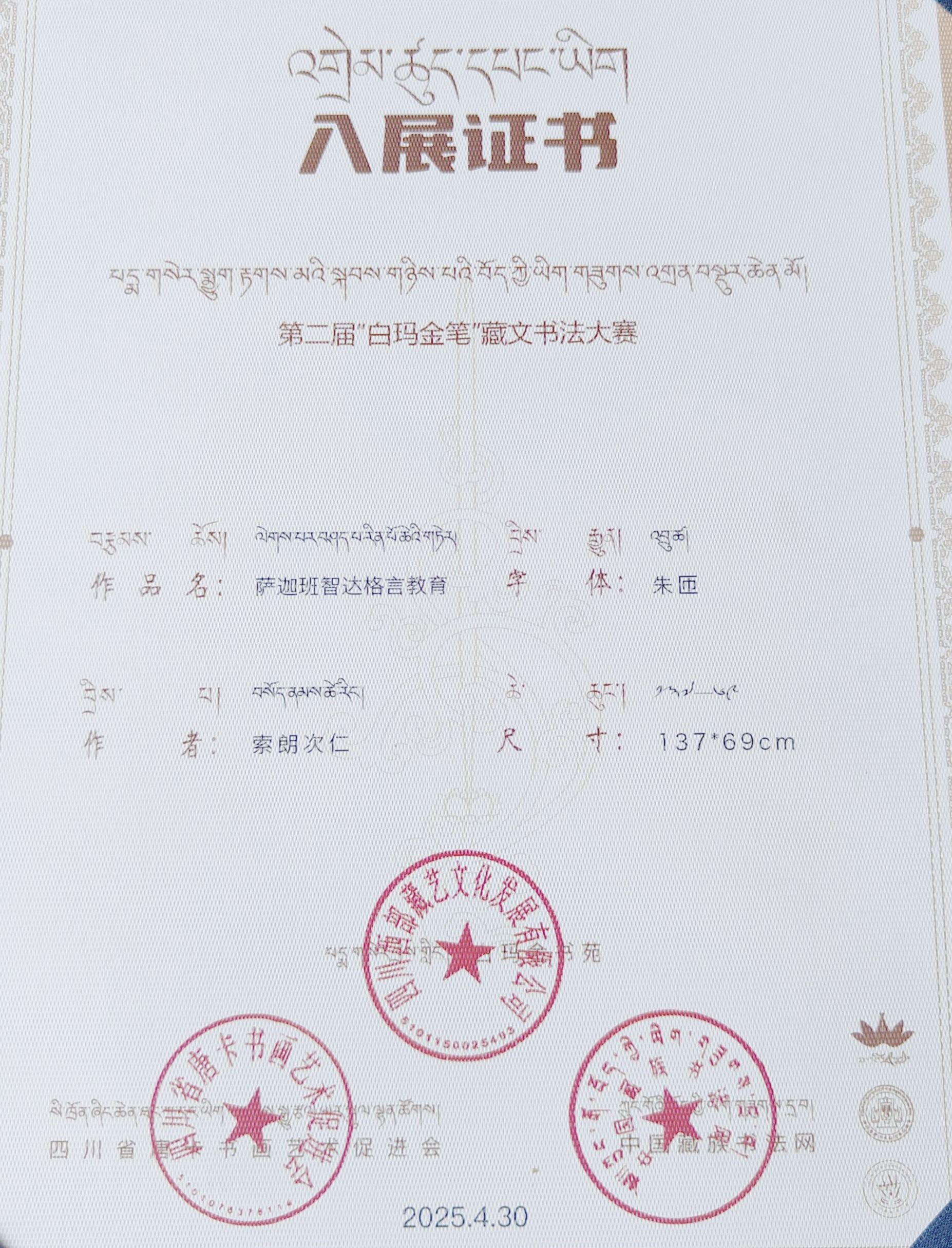 近期,在第二届白玛金笔全国藏文书法大赛的舞台上,西藏农牧学院书法与绘画协会以扎实的藏文书法功底脱颖而出,取得优异成绩,荣获团体优秀组织奖。这份荣誉不仅彰显了协会成员们在藏文书法的传承与推广上取得的优异成绩,也为西藏农牧学院赢得了荣誉。