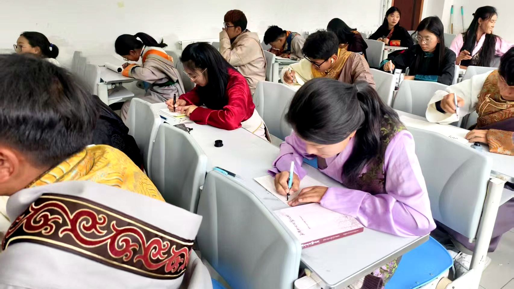 突破困境打磨实力。在平时训练的过程中,协会成员也曾面临许多挑战。藏文书法复杂的笔画结构、严苛的书写规范,常常让初学者感到困难,但枯燥乏味的训练从未磨灭他们对书法的热情。学校提供的良好平台,以及老师和学长学姐们的悉心指导,让他们在一次次经验分享、专业培训中突破瓶颈,在反复练习与反思中打磨技艺,这些都为在全国大赛中取得佳绩打下坚实的基础。