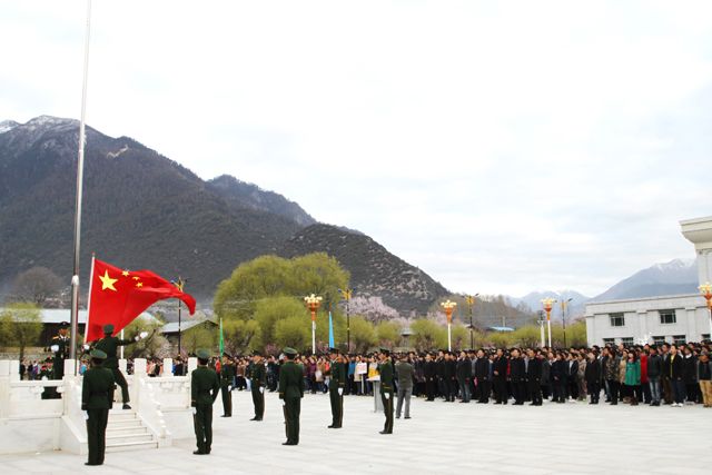 升国旗唱国歌,感恩抒怀。3月28日上午8时,全院5000多名师生在文体馆广场庄严肃立,隆重举行升国旗唱国歌仪式。学院党委书记、副院长纪建洲在仪式上讲话。在庄严而隆重的氛围里,全体师生共同追忆西藏百万农奴在中国共产党的领导下,翻身解放、获得新生,推翻政教合一的封建农奴制,建设富裕文明的社会主义新西藏的奋斗历程;一起回顾中国共产党领导下社会主义新西藏经济建设、政治建设、文化建设、社会建设不断取得新的伟大进步;共同祝福伟大的祖国永远繁荣昌盛、美丽的新西藏再铸辉煌。当鲜艳的五星红旗冉冉升起,雄壮的国歌声在广场上空飘荡,表达着我院师生对伟大祖国的无限热爱和中国共产党的无限忠诚,诉说着全院师生建设美丽新西藏、建设美丽农院的豪迈情怀。