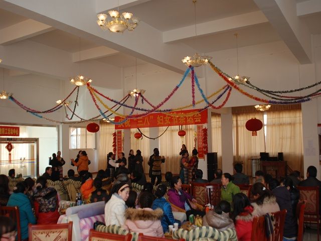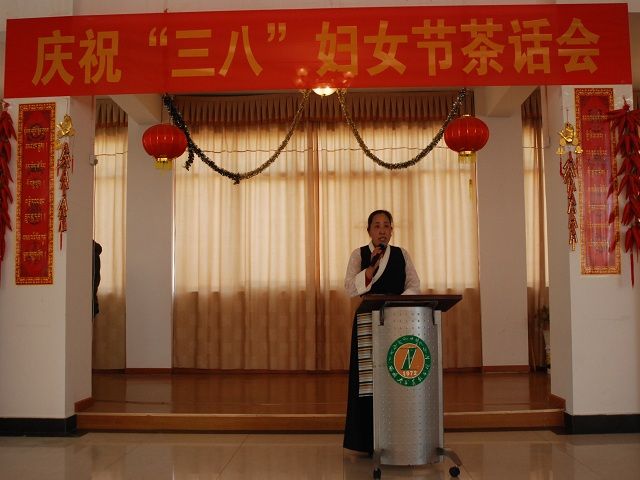 2013年3月8日下午,学院教职工活动中心张灯结彩,气氛热烈祥和,充满着欢声笑语,由院教育工会承办的庆祝第102个“三八”妇女节茶话会在这里隆重举行。院党委书记、副院长纪建洲,党委副书记、院长次旦平措出席茶话会,院党委委员、纪委书记、教育工会主席谢金川出席并致辞。女职工代表旺姆教授及青年教师代表万丹老师分别在会上发言。全院女职工300余人及各县处级单位领导干部代表参加。