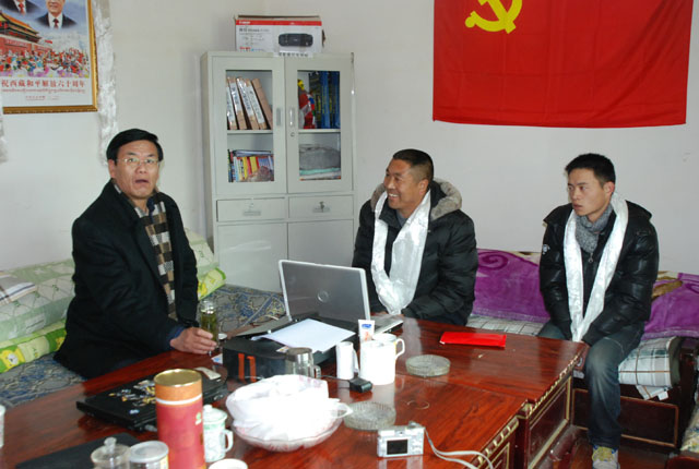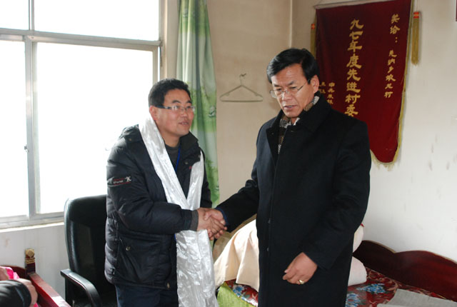 1月8日,我院党委书记、副院长桑珠,学院创先争优强基础惠民生活动领导小组成员、领导小组办公室主任毛永西一行4人先后赴米林县郎多村、羌渡岗村、娘龙村,检查指导我院创先争优强基础惠民生活动,并看望慰问驻村工作队。