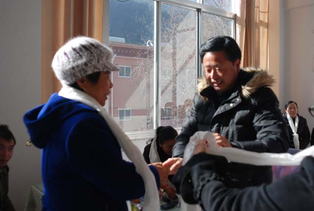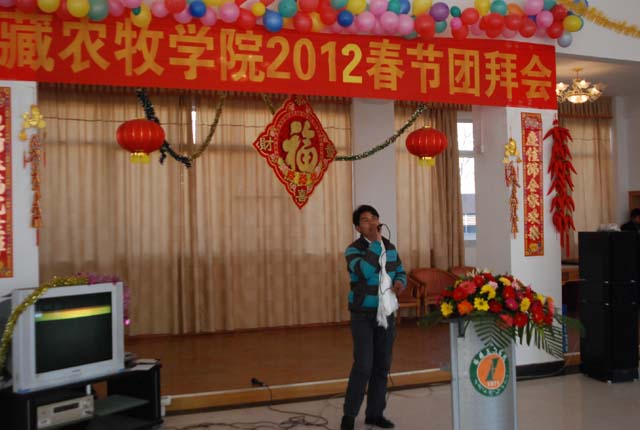 院党委委员、纪委书记谢金川出席并发表了热情洋溢的新年贺词。他代表学院党委、行政向全体教职工拜年,特别向春节坚守工作岗位的后勤、安全保卫等部门的教职工表示节日的问候和崇高的敬意。他说,2011年我院教学科研管理服务等各方面都取得了可喜的成绩,希望在新的一年里,学院在自治区党委的坚强领导下,在各级领导部门的关心支持下,在兄弟院校的大力援助下,在全院师生员工的共同努力下,紧紧把握“十二五”规划的新机遇,进一步团结奋斗、开拓进取,全面推动学院各项事业科学发展,共同开创农牧学院更加灿烂美好的明天。在欢快的气氛中,谢金川书记向在场的教工一一献上哈达,送上了新春祝福。