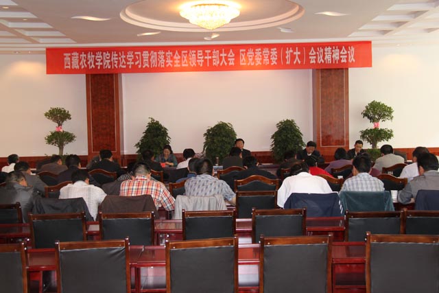 2011年8月30日下午,参加完全区领导干部大会的我院党委书记、副院长桑珠主持召开学院党委理论学习中心组专题会议,传达学习8月25日全区领导干部大会及8月27日区党委常委(扩大)会议精神,全院县处级以上领导干部及助理参加学习会。