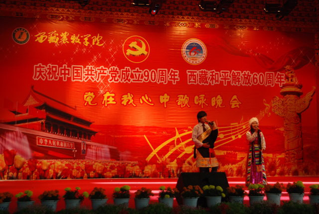 6月的农牧学院彩旗飘扬、鲜花盛开,处处洋溢着节日的喜庆氛围,全院师生员工身着节日盛装,怀着无比喜悦的心情,在体育馆隆重举行庆祝中国共产党成立90周年和西藏和平解放60周年“党在我心中”大型歌咏比赛活动。学院党政领导及林芝地区行署副专员顿吉出席并观看了演出,全院4000余名师生员工参与了演出活动,大家怀着无比激动的心情一同重温党的历史、传承红色精神,为鲜艳的党旗和国旗添上了浓墨重彩的一笔。