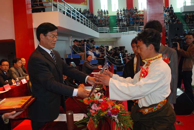 大会最后在热烈的气氛中举行了颁奖仪式,院党委书记、副院长桑珠与周秀英副院长、赵垦田副院长一起为获奖的集体和个人颁发了荣誉证书和奖金。大会在激昂的《中国共产主义青年团团歌》声中顺利结束。