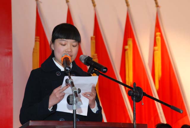 大会在雄壮的国歌声中开始。院党委委员、副院长赵垦田宣读了《关于表彰2010—2011学年共青团系统先进集体及先进个人的决定》和《关于表彰2010—2011学年校外获奖先进个人的决定》,院党委宣传部副部长、院团委书记赵德军宣读了《关于表彰2010—2011学年寒假社会实践调查活动优秀调查报告的决定》。米玛次仁同学、孟萌老师分别代表青年学生和青年教职工作了大会发言。