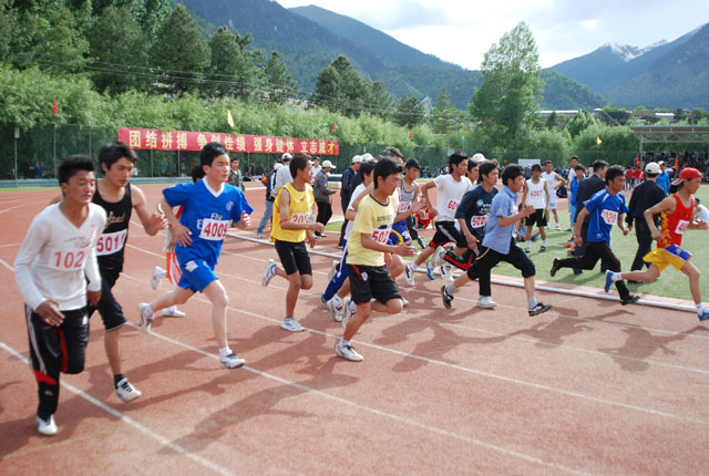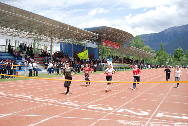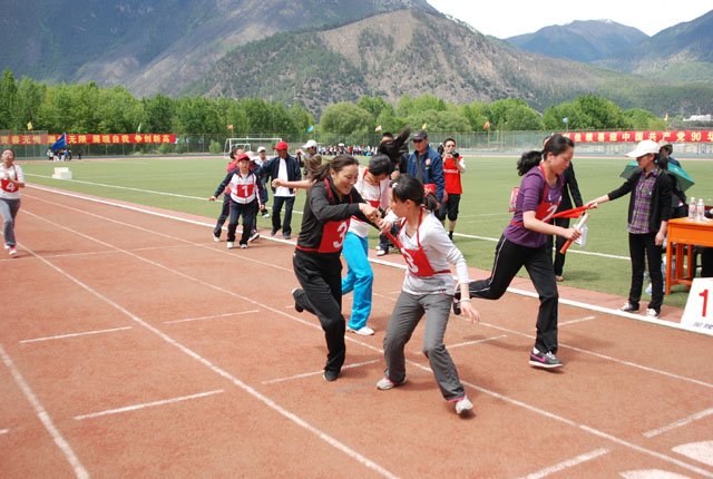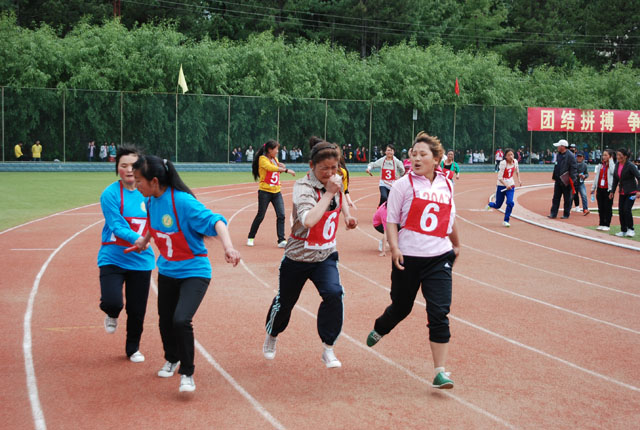 周秀英副院长(最前面为周秀英副院长)与女教职工一起参加20米赶球跑趣味比赛