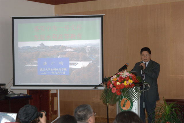 武汉大学校长助理、水利水电学院院长谈广鸣教授作题为《落实中央一号文件,发展水利高等教育》的学术报告