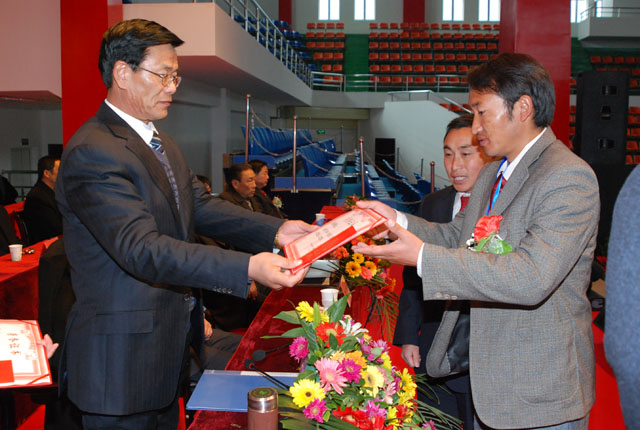 大会最后,院领导为受到表彰的先进集体和先进个人颁奖,桑珠书记与各单位续签了2011年毕业生就业工作目标责任书和2011年社会治安综合治理目标管理责任书。