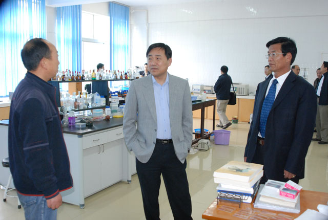 下午16时,姜沛民司长一行在院党委书记、副院长桑珠陪同下,参观了我院生物技术中心、图书馆、行政楼及正在建设中的我院自治区“十一五”重点项目(学生活动中心、综合教学大楼和实验大楼等)。在生物技术中心动物疾病检测中心实验室,姜沛民司长与正在做实验的学生进行了亲切交谈;在图书馆,姜沛民司长一行参观了阅览区、期刊区、藏书区等,赞扬图书馆管理先进、环境整洁、非常人性化。
