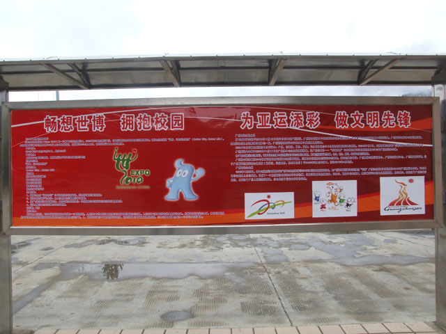 活动开展期间,院团委在校园主干道悬挂了“讲文明、树新风、知礼仪,志愿服务我先行”、“迎世博、迎亚运,我为世博亚运添光彩”等横幅,绚丽醒目的巨大横幅为绿色校园增添了无限生机与喜庆。院藏语文协会、话剧艺术团、自立自强协会、环保协会等学生社团精心制作了二十多块展板,向师生员工广泛宣传世博会和亚运会相关知识,展板图文并茂,版面设计新颖,展示了各学生社团积极向上的精神风貌和独特的社团文化特色,吸引了全院师生员工前去观看。为了以实际行动迎接世博会和亚运会,青年志愿者服务队还开展了清扫垃圾、美化校园环境等义务劳动,志愿者们以饱满的热情清扫了校园内外,用自己的勤劳和汗水换来了校园的美丽和清洁。