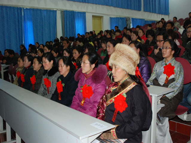 2010年3月7日下午,我院在学术报告厅隆重举行纪念“三八”国际劳动妇女节100周年暨表彰大会,院党委书记、副院长桑珠出席大会并发表了热情洋溢的讲话,表彰大会由院党委委员、副院长周秀英同志主持,院党委委员、教务处处长赵垦田,各县处级单位行政领导及全院女教职员工参加大会。