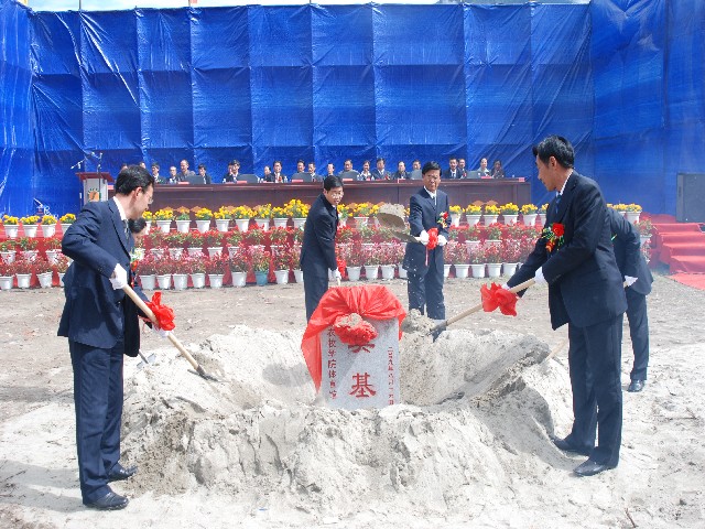 最后,在欢庆的鞭炮声中,杜建功等主席台就座的院领导为工程进行了奠基培土。