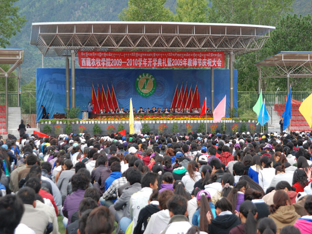 校党委书记、副校长桑珠做了重要讲话。他在讲话中向全校师生员工特别是广大新同学提出了四点要求,一是坚持用中国特色社会主义理论体系武装头脑,努力成为中国特色社会主义共同理想的坚定信仰者;二是充分认清形势,牢固树立政治意识、大局意识、责任意识、忧患意识,扎实开展好反对分裂、维护稳定各项工作,全力维护校园和社会稳定;三是勤奋学习,勇于实践,努力掌握报效祖国、服务人民的知识和本领;四是注重道德修养,努力做一个高尚的人。