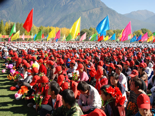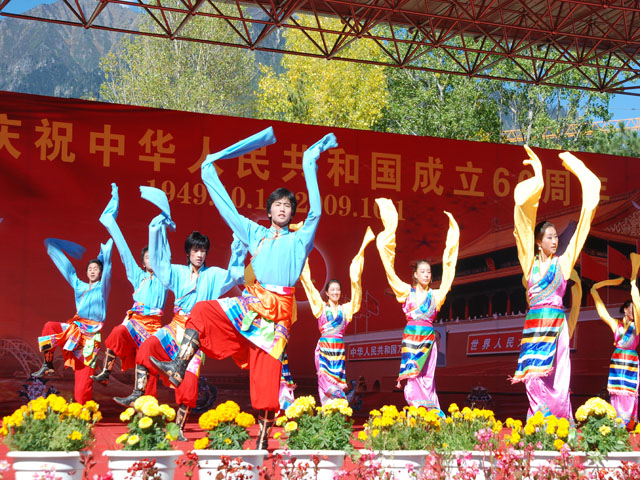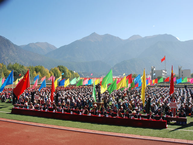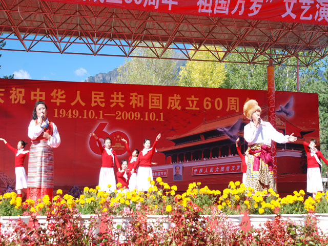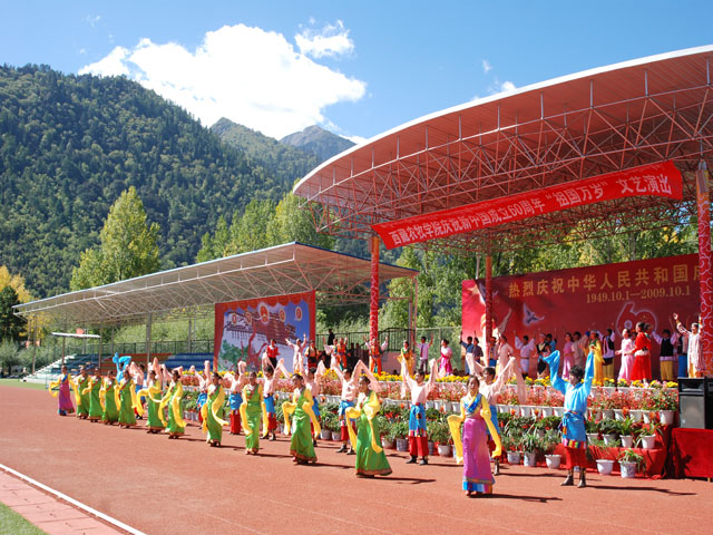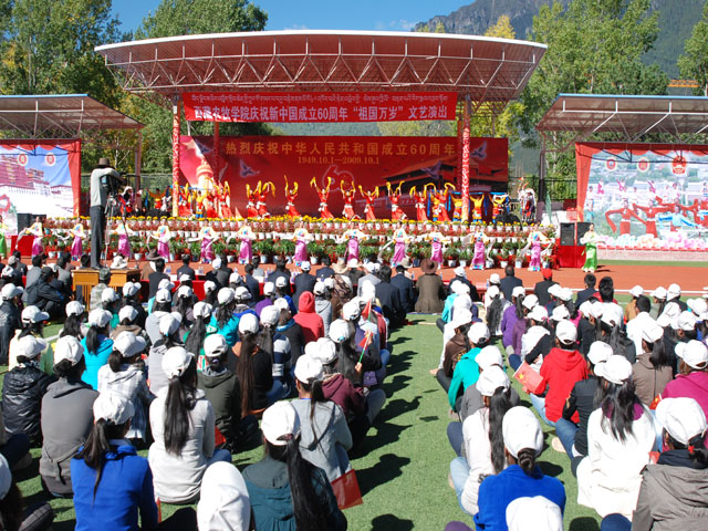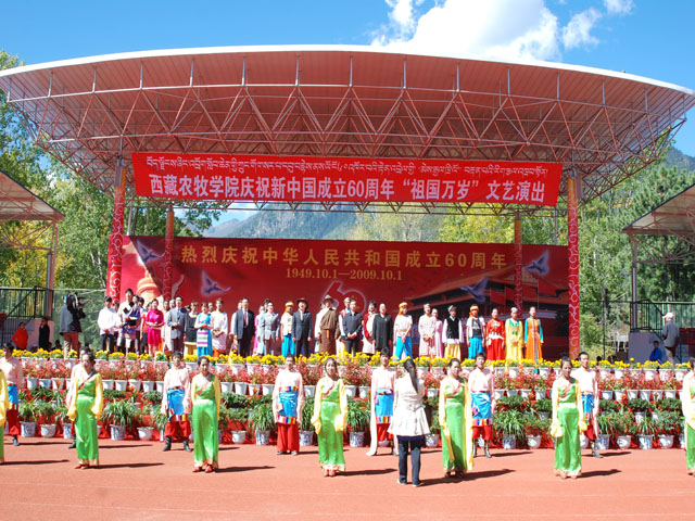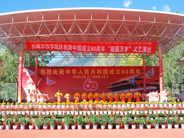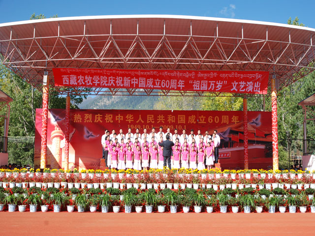10月2日上午,欧博体育场彩旗飘扬、掌声雷动,为隆重庆祝新中国成立60周年,进一步广泛开展爱国主义教育和民族团结教育,积极维护社会和校园和谐、安全、稳定,为确保全校师生员工度过一个隆重、热烈、安全、祥和的国庆节而举行的庆祝新中国成立60周年“祖国万岁”文艺演出在这里进行。学校领导及自治区人大常委会副主任、自治区驻林芝地区维稳工作组组长张跃平、林芝地委副书记、行署专员卓嘎一同参加观看。
