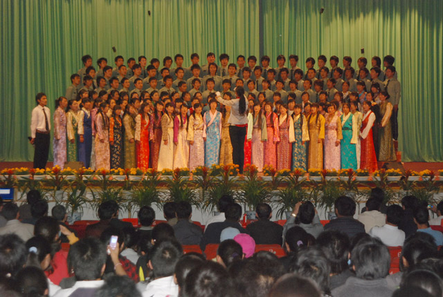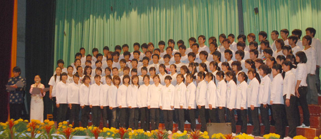 通过大型歌咏演唱活动,充分展现广大师生热爱祖国、朝气蓬勃、昂扬向上的精神风貌,不断激发了青年大学生的爱国热情,营造了积极向上、健康文明的校园文化氛围,进一步在校园内唱响了共产党好、社会主义好、改革开放好、伟大祖国好、各族人民好的时代主旋律,为建党88周年、建国60周年献上了一份厚礼。