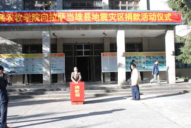 2008年10月6日,拉萨当雄县发生了6.6级地震灾害,给当地人民群众生命财产造成了重大损失。农牧学院党委和行政高度重视地震灾区救灾募捐工作,及时召开党委会议、各县处级单位党政一把手会议,认真传达区党委办公厅、区政府办公厅《关于开展为灾区人民送温暖献爱心活动的紧急通知》精神,对学院支援地震灾区捐款活动进行了专题研究和全面部署。