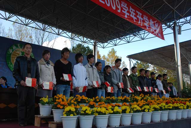 典礼在庄严的国歌中拉开了序幕。会上,副校长郑维列、校党委委员、副校长强巴多吉分别宣读了2007——2008学年度先进集体和个人的表彰决定。随后,动科学院米玛永措同学代表新生发言,表达了他们发奋学习、立志成才的信念与决心。教师代表邢震、在校生代表王慧宇分别寄语新同学,希望他们能够尽快适应大学生活,秉承“博学为农、精业兴藏”的校训,努力学习科学文化知识,早日走向社会、回报祖国。