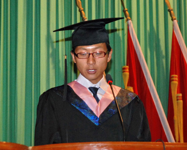 会上,学院副院长郑维列宣读了2008届研究生、本专科学生毕业的决定以及授予研究生硕士学位、本科生学士学位的决定;院党委委员、纪委书记公曲宣读了关于表扬去艰苦边远山区工作的毕业生的通知,表彰2008届毕业生先进个人的决定以及表彰2008届毕业生优秀学生奖学金、英语过级奖、校外奖励获得者的通知。随后,西热平措同学代表毕业生发言,表示将扎根西藏、服务三农,在实践中长知识、增才干,为母校争光添彩;在校生代表武瑞静、教师代表次央分别寄语毕业生志存高远,勇于拼搏,努力成为建设新西藏的合格人才。