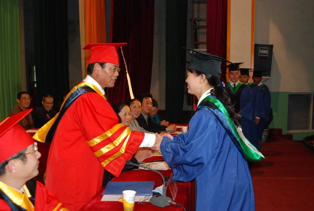 2008年7月4日下午,农牧学院2008届毕业典礼在大礼堂隆重举行,18名研究生、658名本专科学生顺利毕业。