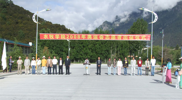 最后,院领导为志愿者们敬献了哈达,院党委书记、副院长桑珠同志将满载着农院人对北京奥运会无限祝福与期待的农牧学院志愿者旗帜交给了志愿者。随后,志愿者们在欢快的牦牛舞和哈达舞中坐上汽车,踏上了奔赴拉萨、再赴北京的征程。