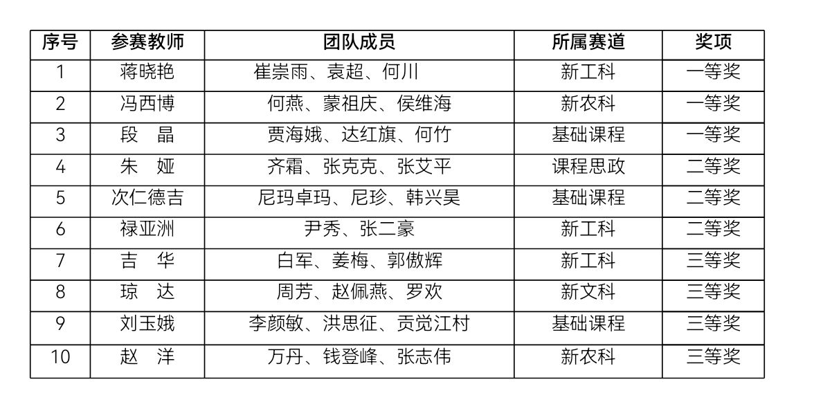 第四届全国高校教师教学创新大赛西藏赛区比赛欧博教师获奖情况: