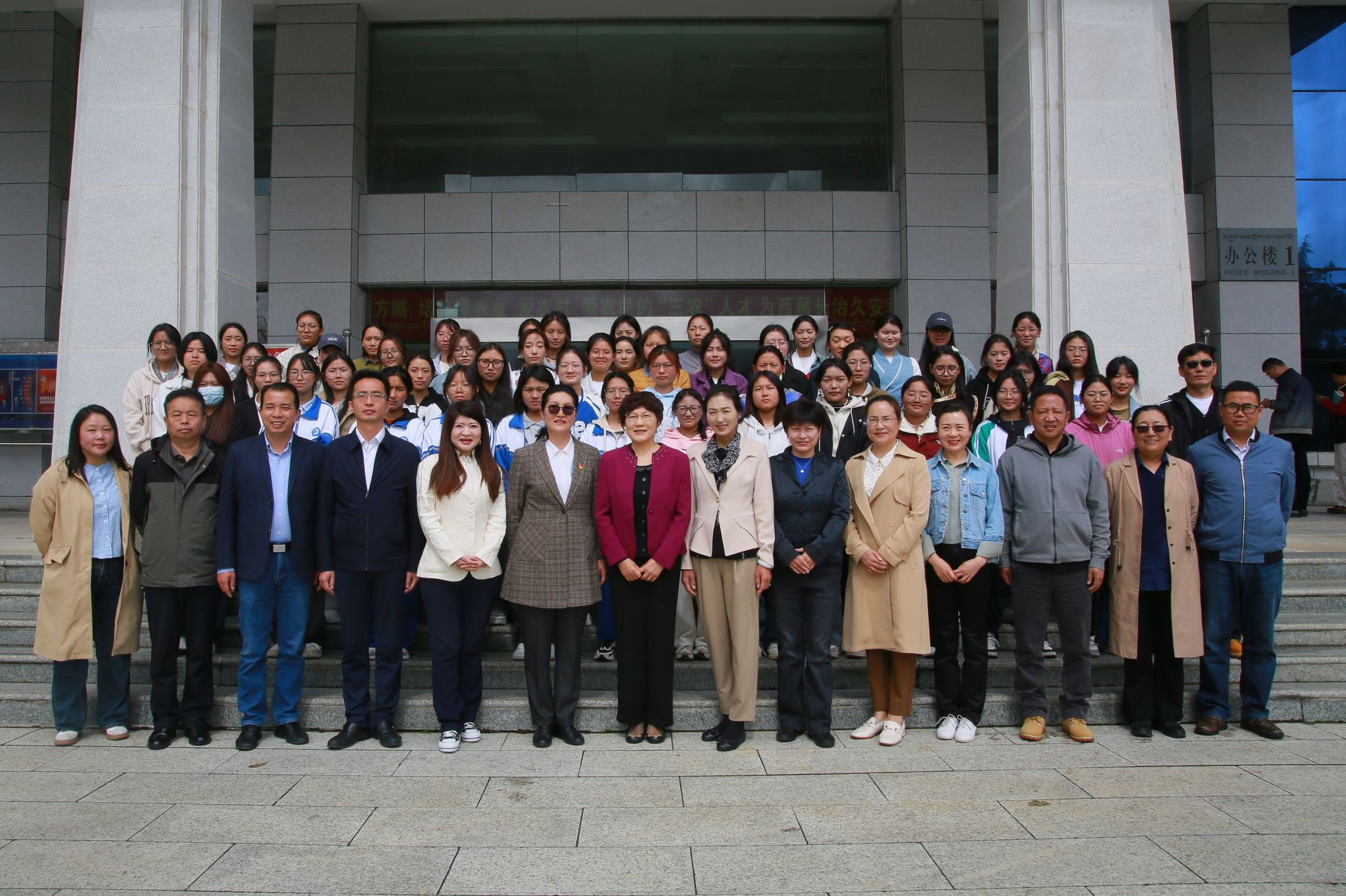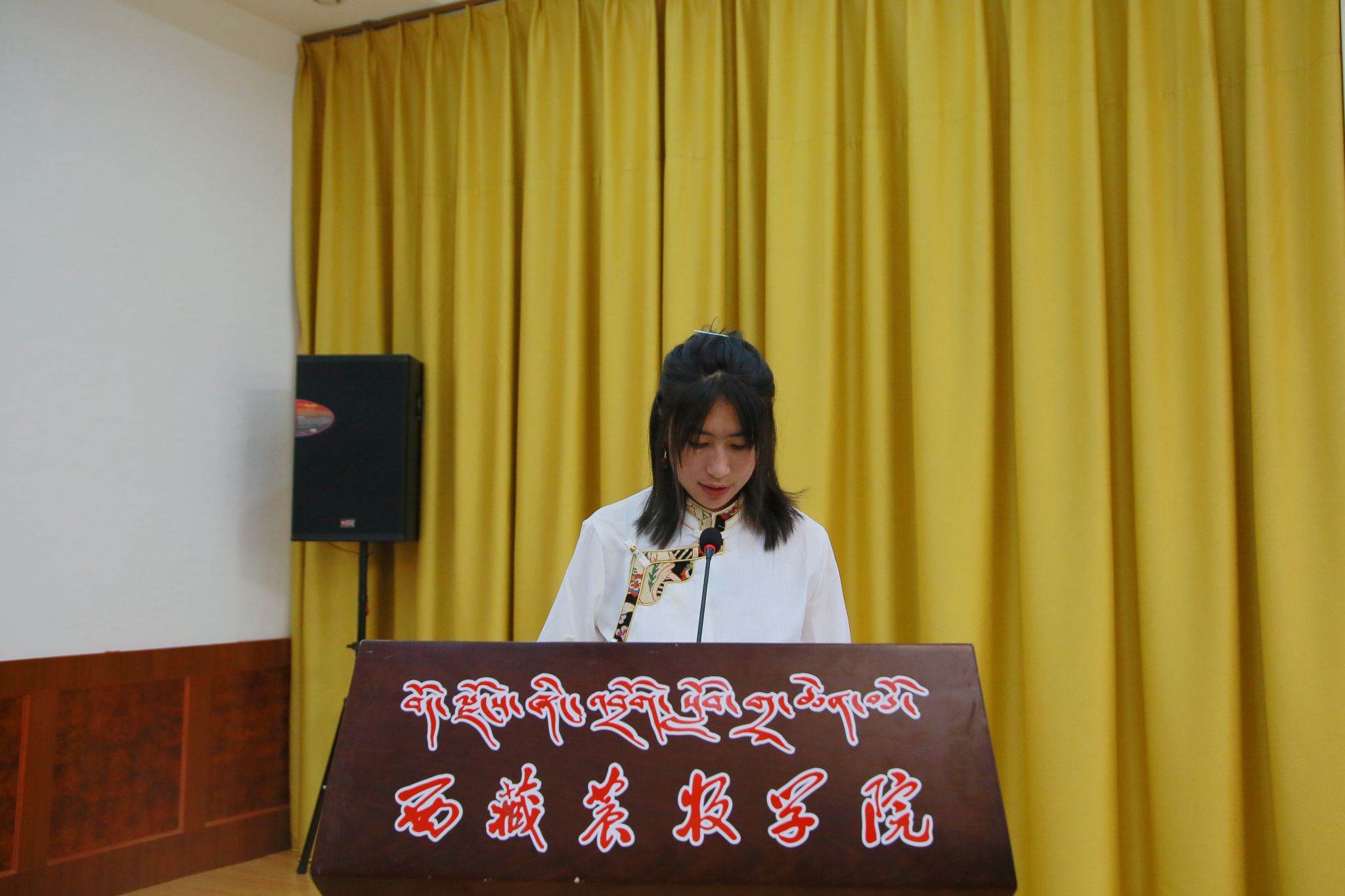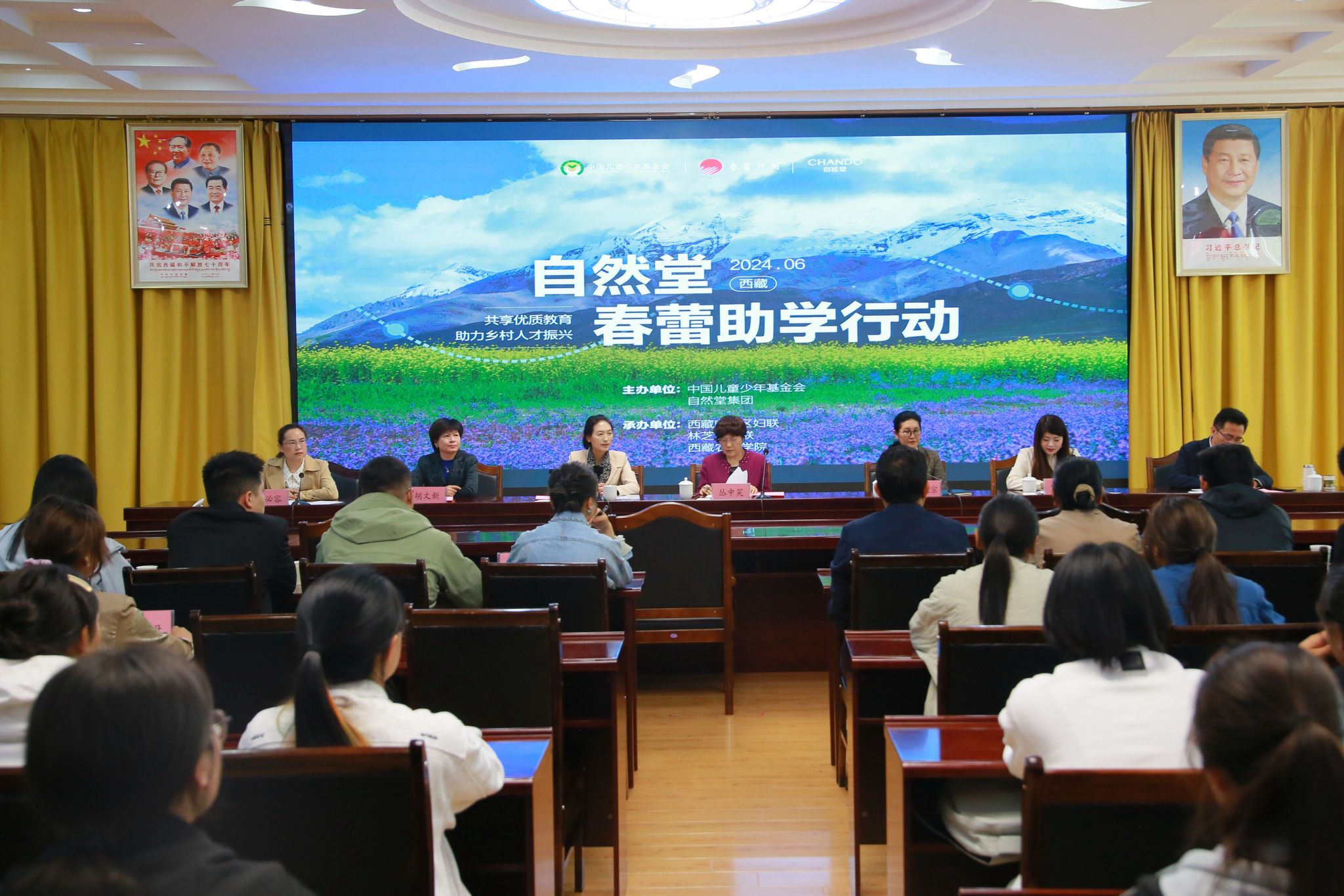 党委副书记、院长强巴央宗代表学校党委、行政和全校师生向中国儿童少年基金会、自治区妇联、林芝市妇联以及自然堂集团表示热烈的欢迎和诚挚的敬意。她指出,“自然堂春蕾行动” 是一项意义深远的活动,不仅体现了以中华儿童少年基金会、自然堂集团股份有限公司、自治区妇联为代表的社会各界对家庭经济困难女大学生教育的重视和关爱,更展现了党和国家对教育公平的坚定承诺。随后她从珍惜机会、努力学习;传递温暖、感恩回馈;志存高远、坚定信念三个方面对获奖同学提出了期望。