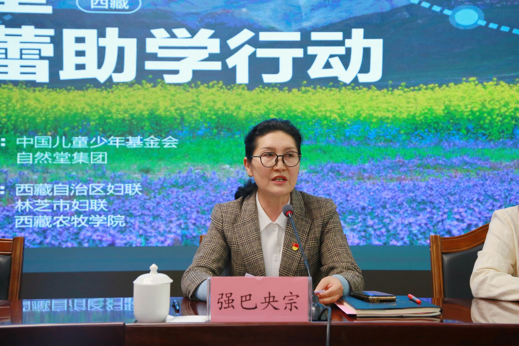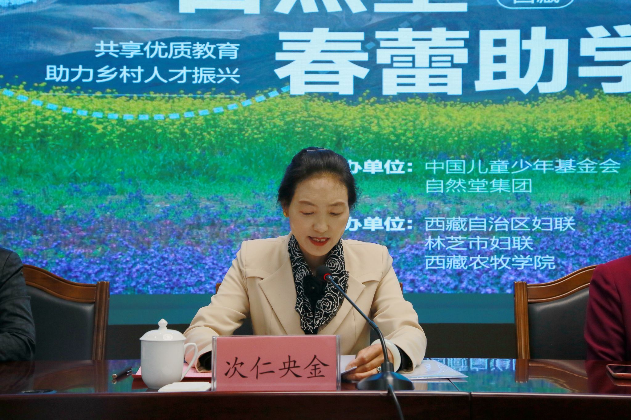 自然堂集团公共事务总经理陈娟玲介绍了自然堂集团的公益历程,她表示自然堂集团始终坚持绿色可持续发展,促进人与自然和谐共生;强调助力乡村人才振兴,人才是发展的重要要义,希望通过春蕾助学行动能够帮助更多的藏族女性走出去。