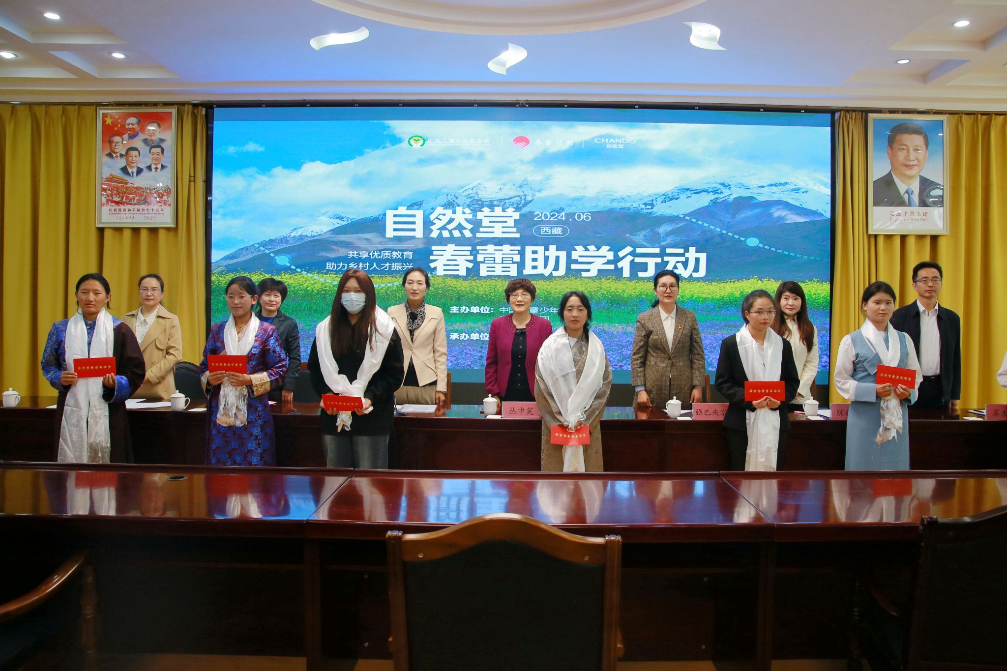 发放仪式现场,各位与会领导为受助学生代表发放了助学金并献上哈达。